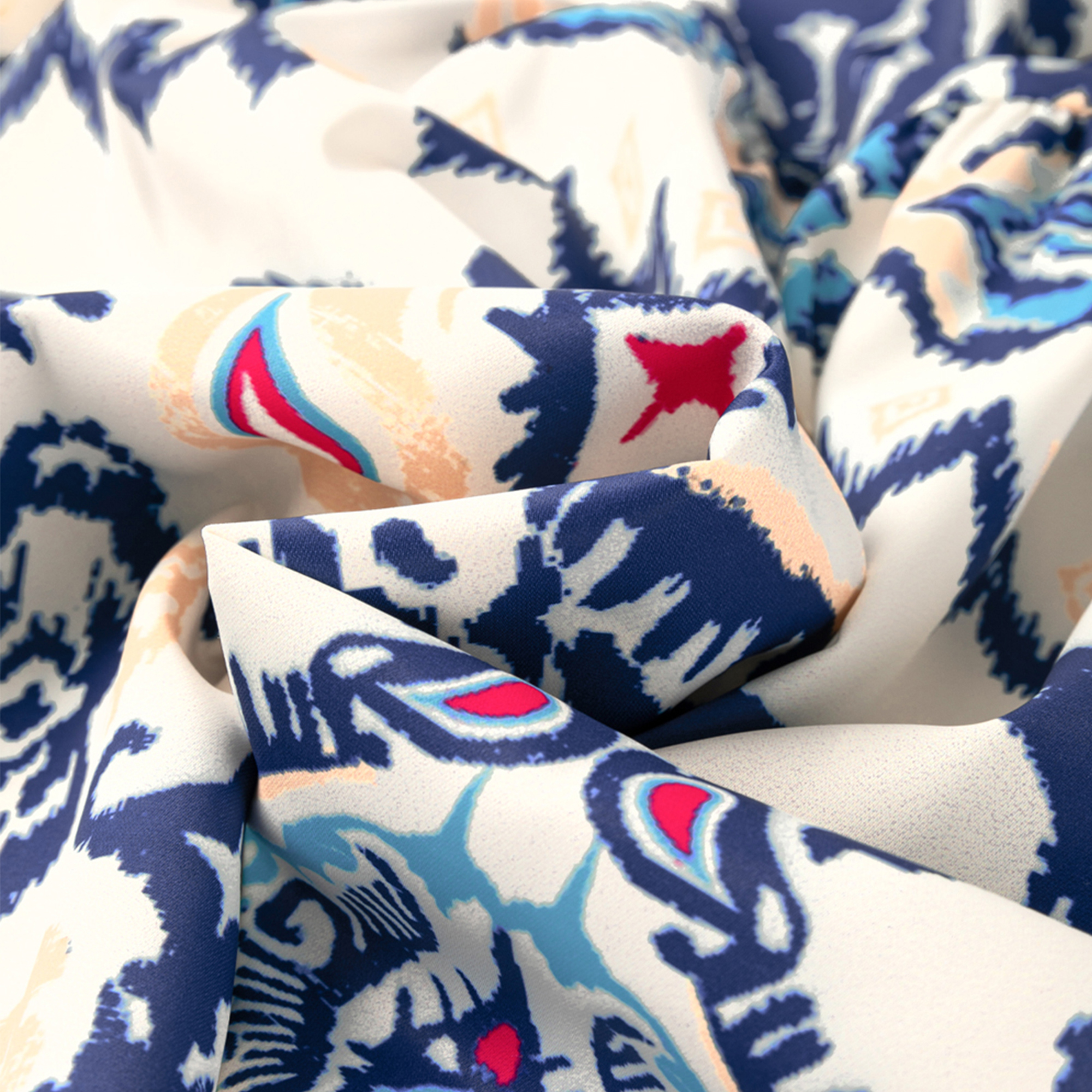 A breezy boho dress inspired by Mediterranean tile art, featuring vibrant blue motifs, a chic contrast neckline, and a flowy tiered silhouette. Soft fabric drapes beautifully, while elastic sleeves add comfort. Effortless, eye-catching, and perfect for sunny escapes or weekend outings. Material: 100% Polyester