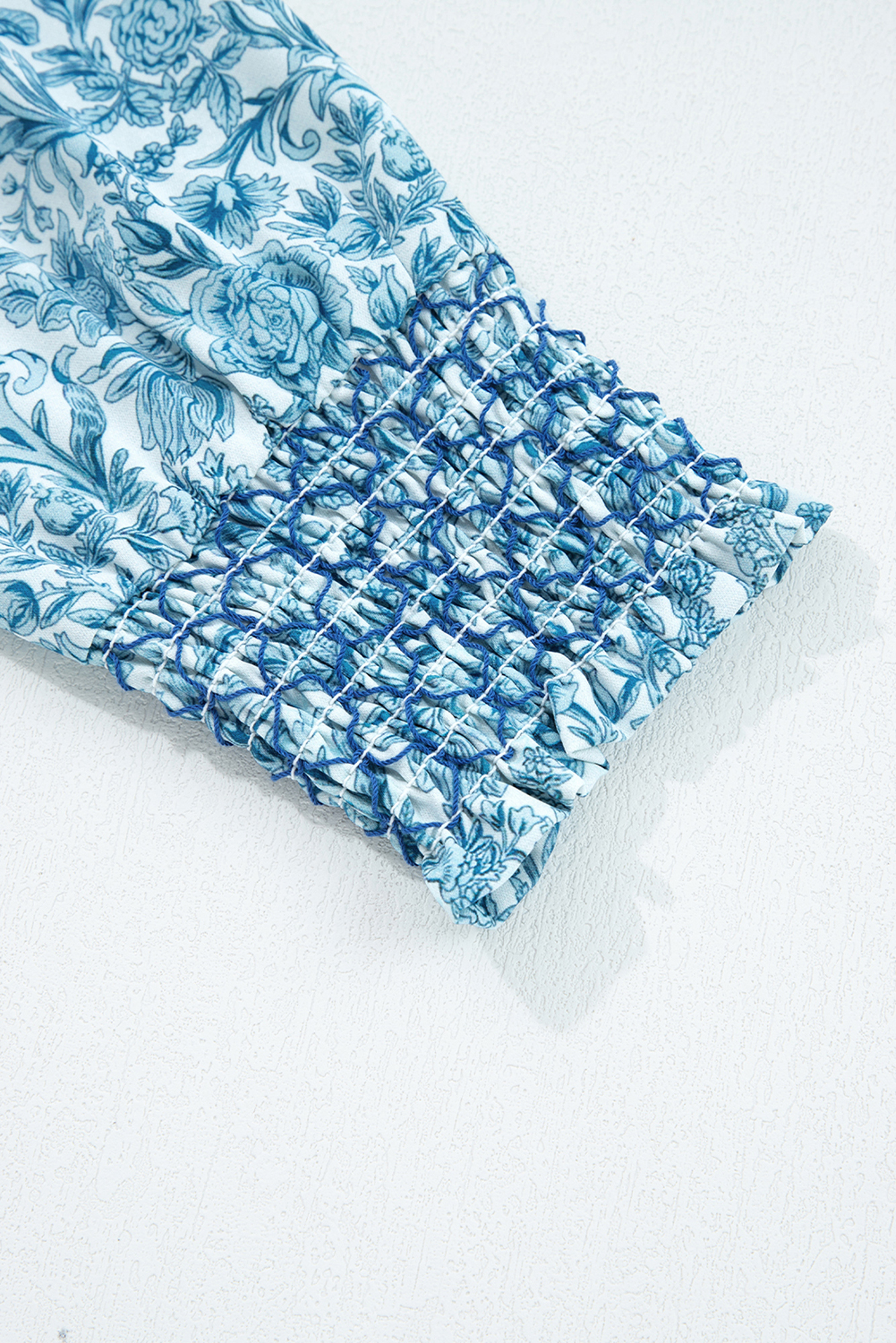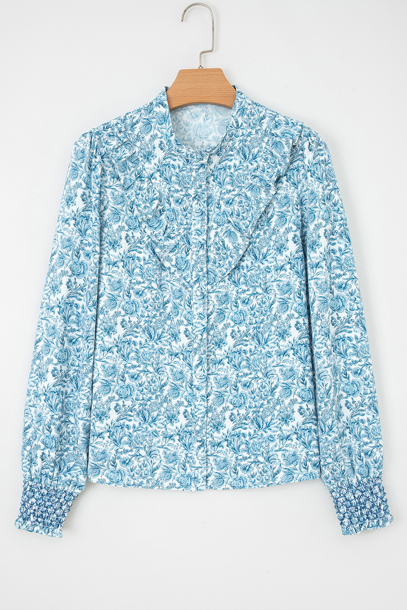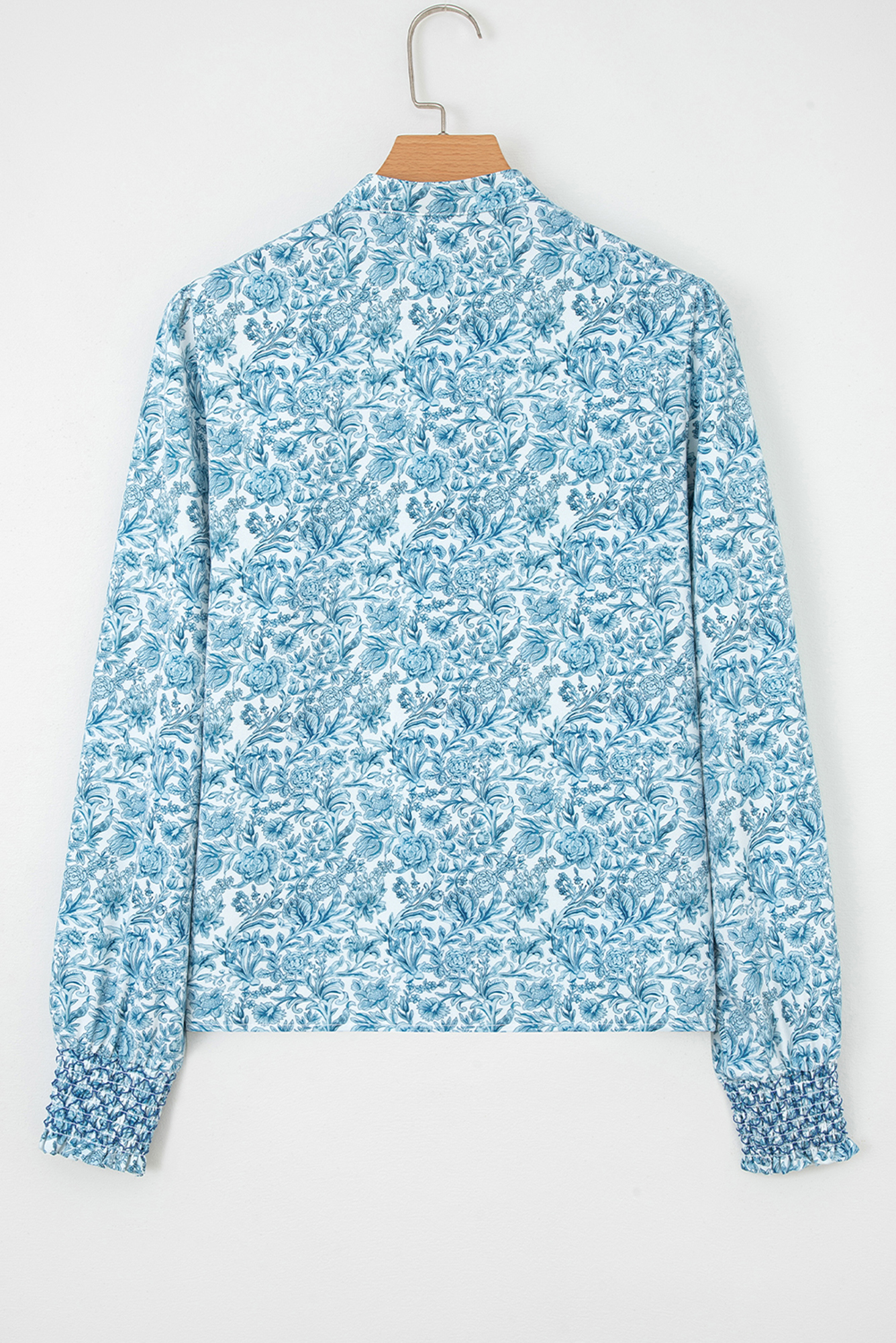 Step into timeless elegance with the Blue Garden Charm Blouse, featuring an allover floral print in soothing blue tones. Designed with smocked cuffs, soft pleats, and a relaxed silhouette, it’s perfect for elevating your everyday style with a touch of feminine charm and effortless grace. Material: 100% Polyester
