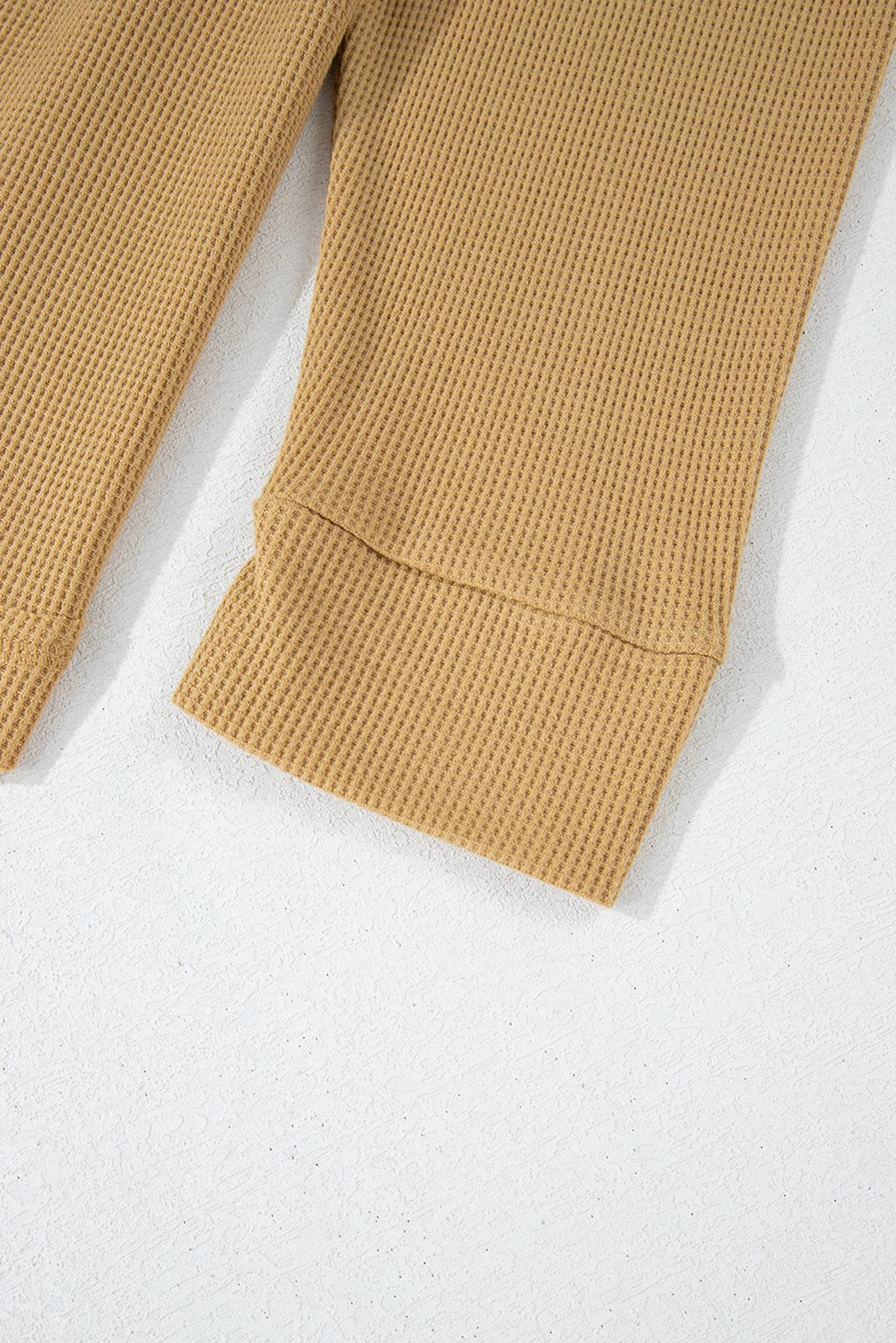 A timeless blend of comfort and style, the Honeycomb Ease Waffle Henley features a soft textured knit with a relaxed fit and classic button-front detail. Perfect for layering or lounging, this top pairs effortlessly with jeans for a cozy, casual look that feels as good as it looks. Material: 75% Polyester, 25% Cotton