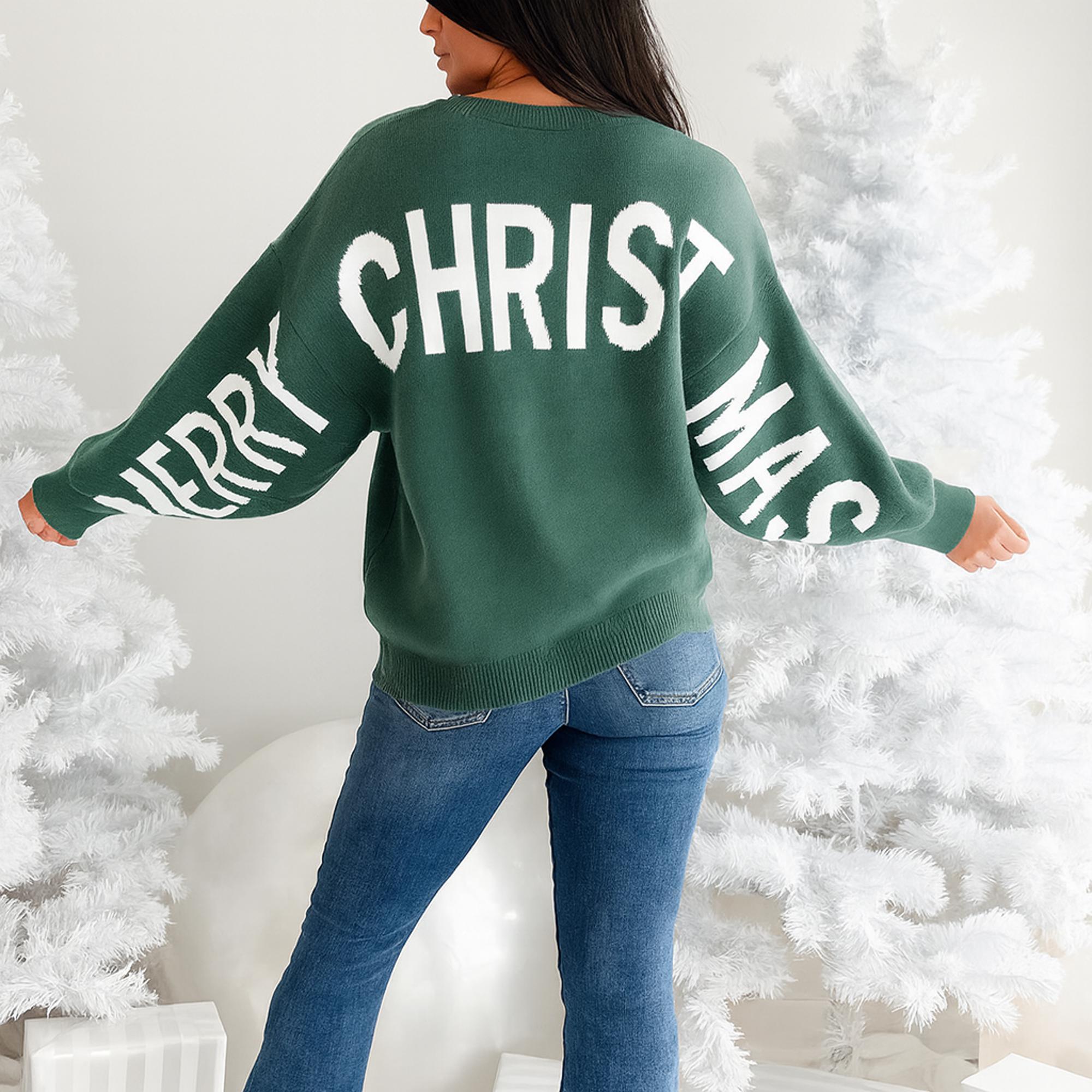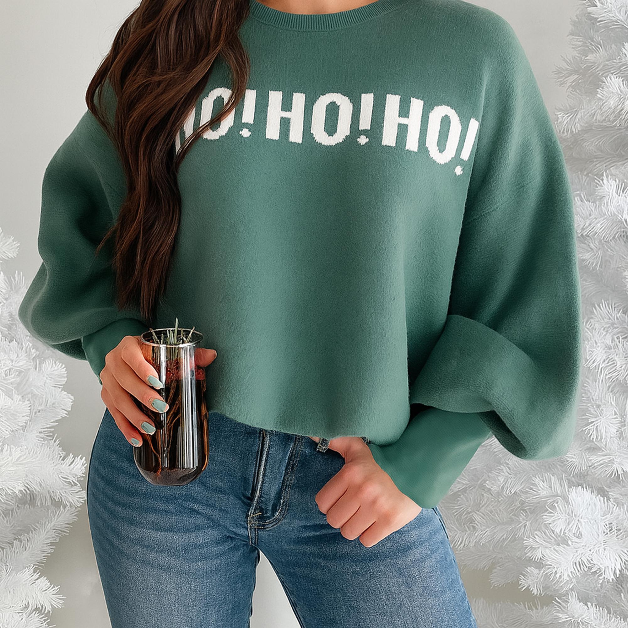 Bring the holiday cheer in the Jolly Spirit Sweater! This cozy green knit features a playful “HO! HO! HO!” across the front and bold “MERRY CHRISTMAS” on the sleeves and back. With its relaxed fit and soft feel, it’s perfect for festive gatherings, cozy nights, and merry photo moments. Material: 52% Viscose, 26% Polyester, 22% Polyamide