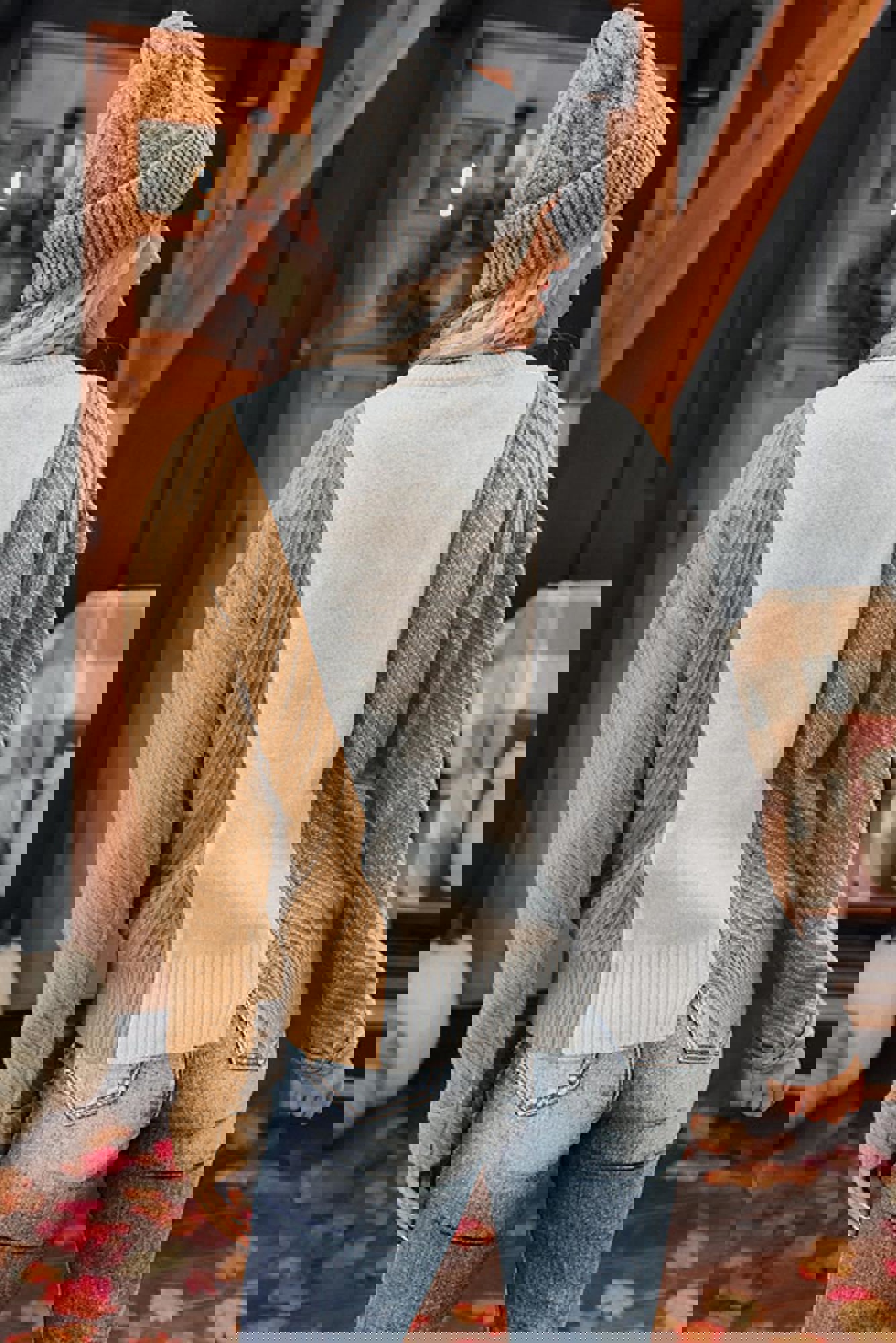 The Maple Mist Colorblock Sweater brings cozy charm to cool-weather days with its soft tri-tone design of camel, cream, and gray. Featuring ribbed diagonal textures, relaxed fit, and split hem detail, this sweater pairs effortlessly with jeans for a chic yet comfortable everyday look. Material: 50% Viscose, 28% Polyester, 22% Polyamide