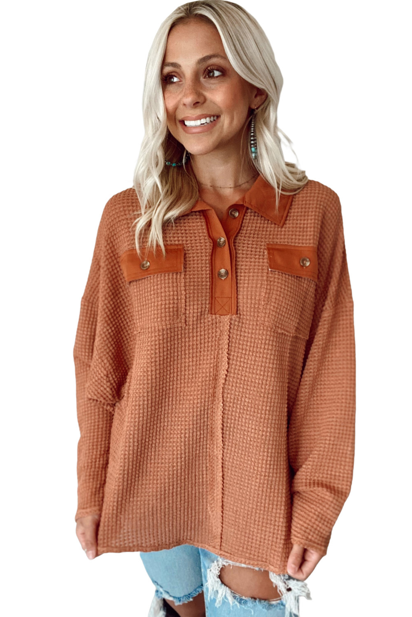 Love Kuza - Rustic Ember Waffle Knit Pullover