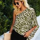 Embrace the untamed allure of the Savanna Style One-Shoulder Top. This chic top features an asymmetrical design with one open shoulder and one sleeveless, kimono-style sleeve. Crafted from an all-over zebra print woven fabric, it exudes wild elegance. With its loose fit and asymmetrical hem, this top adds a touch of safari-inspired sophistication to any ensemble.