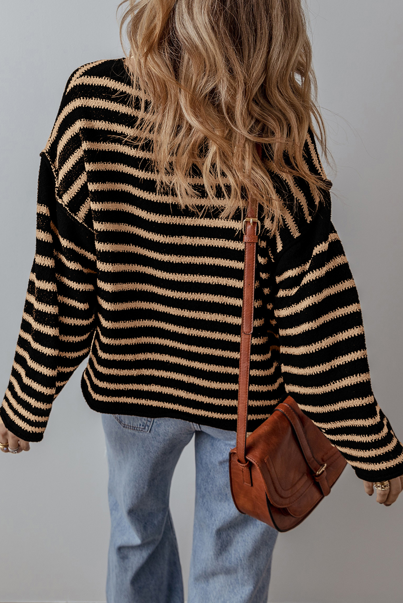 Update your everyday wardrobe with the effortless charm of this striped knit pullover. Designed with classic horizontal stripes in chic black and beige, this lightweight sweater is perfect for layering across seasons. The relaxed fit and drop-shoulder silhouette add a touch of casual elegance, while the soft knit texture keeps you cozy without weighing you down.