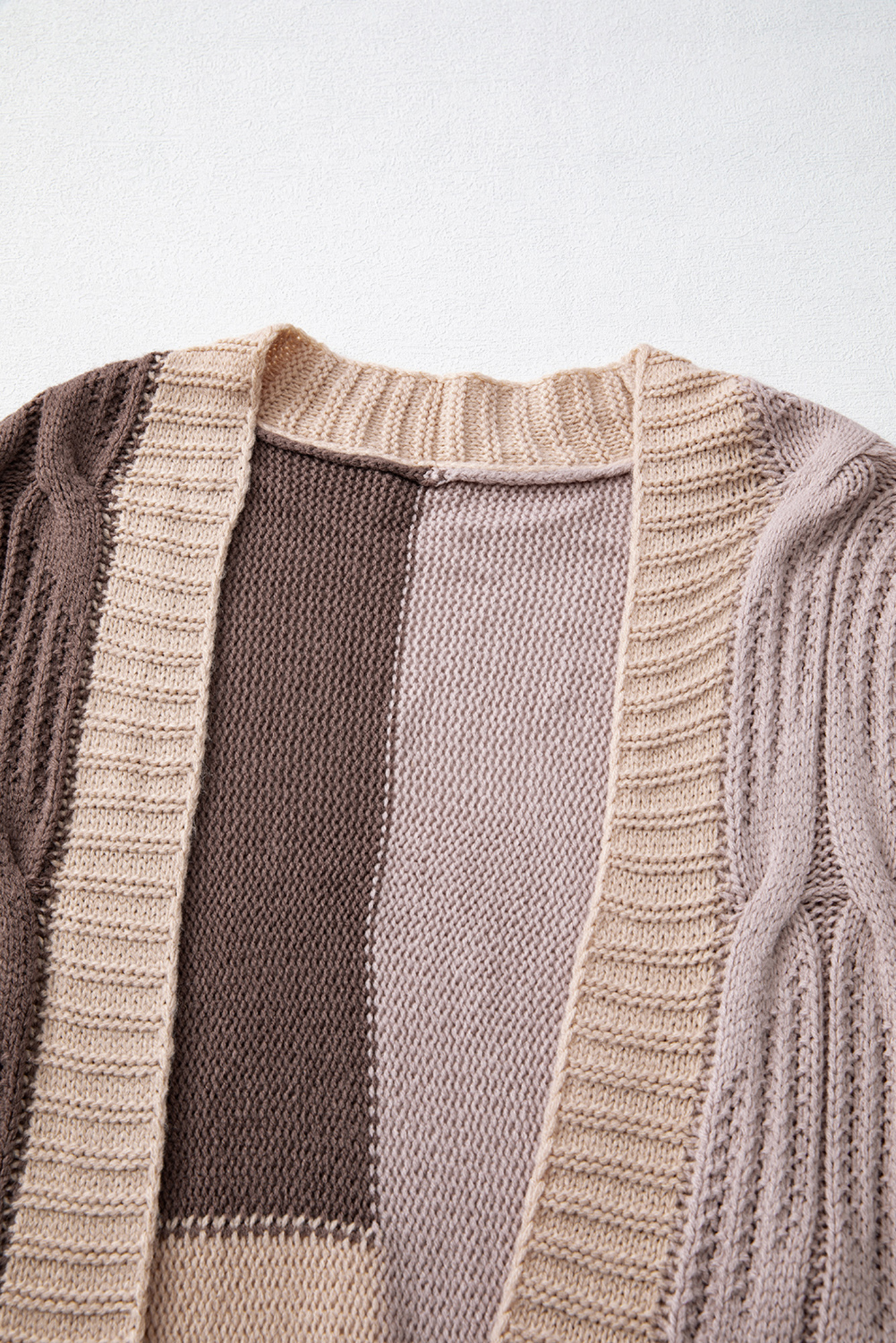Wrap yourself in cozy charm with the Rustic Harmony Patchwork Cardigan. Featuring an earthy palette of mocha, taupe, blush, and mustard blocks, this soft knit offers a relaxed drape and open-front silhouette. Perfect for layering over denim and lace for a casual yet chic everyday look. Material: 100% Acrylic