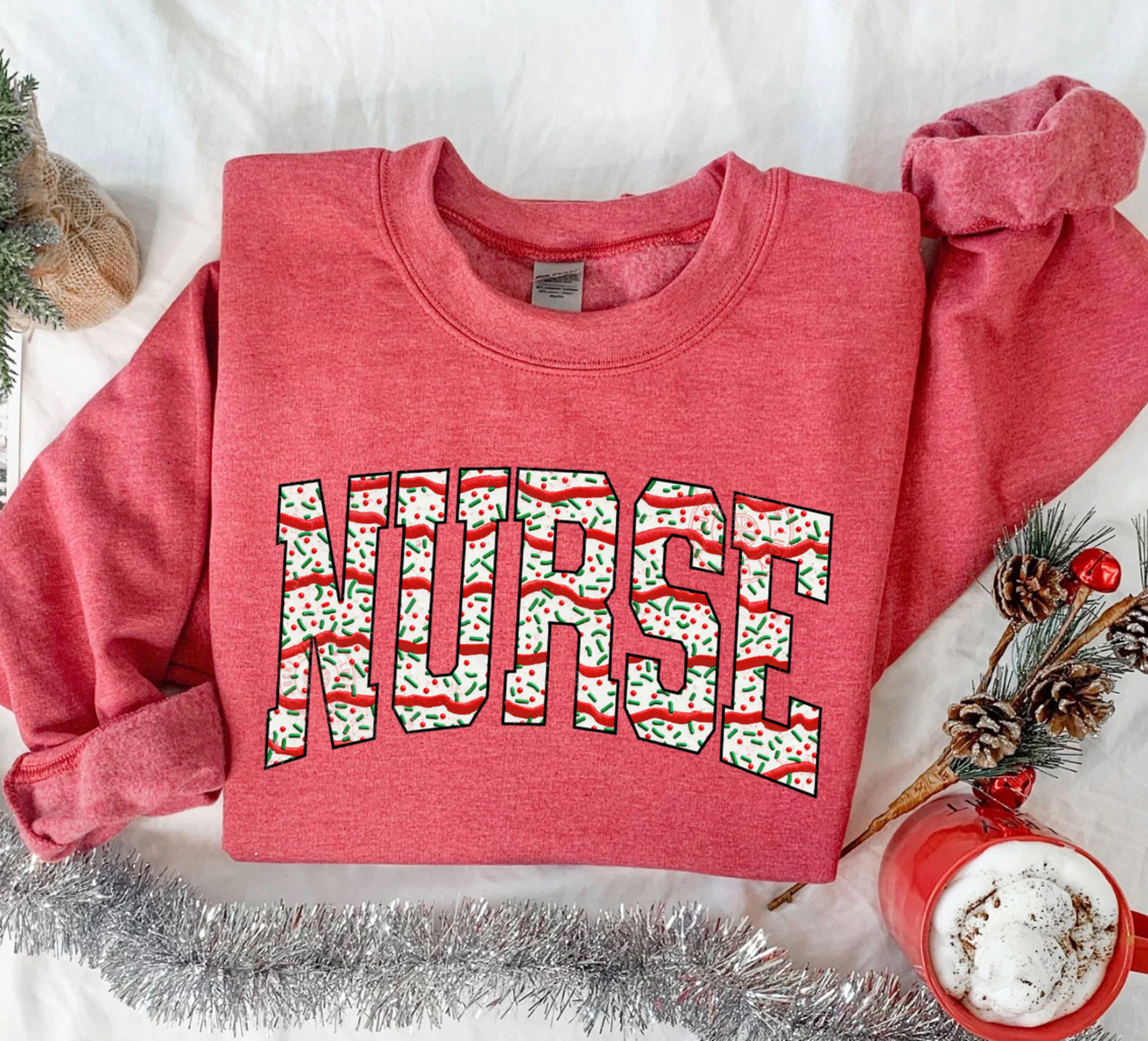 Nurse Christmas Sweatshirt, Merry Nurse Sweatshirt, Christmas Gift for Nurse, Christmas Tree Cake Sweatshirt