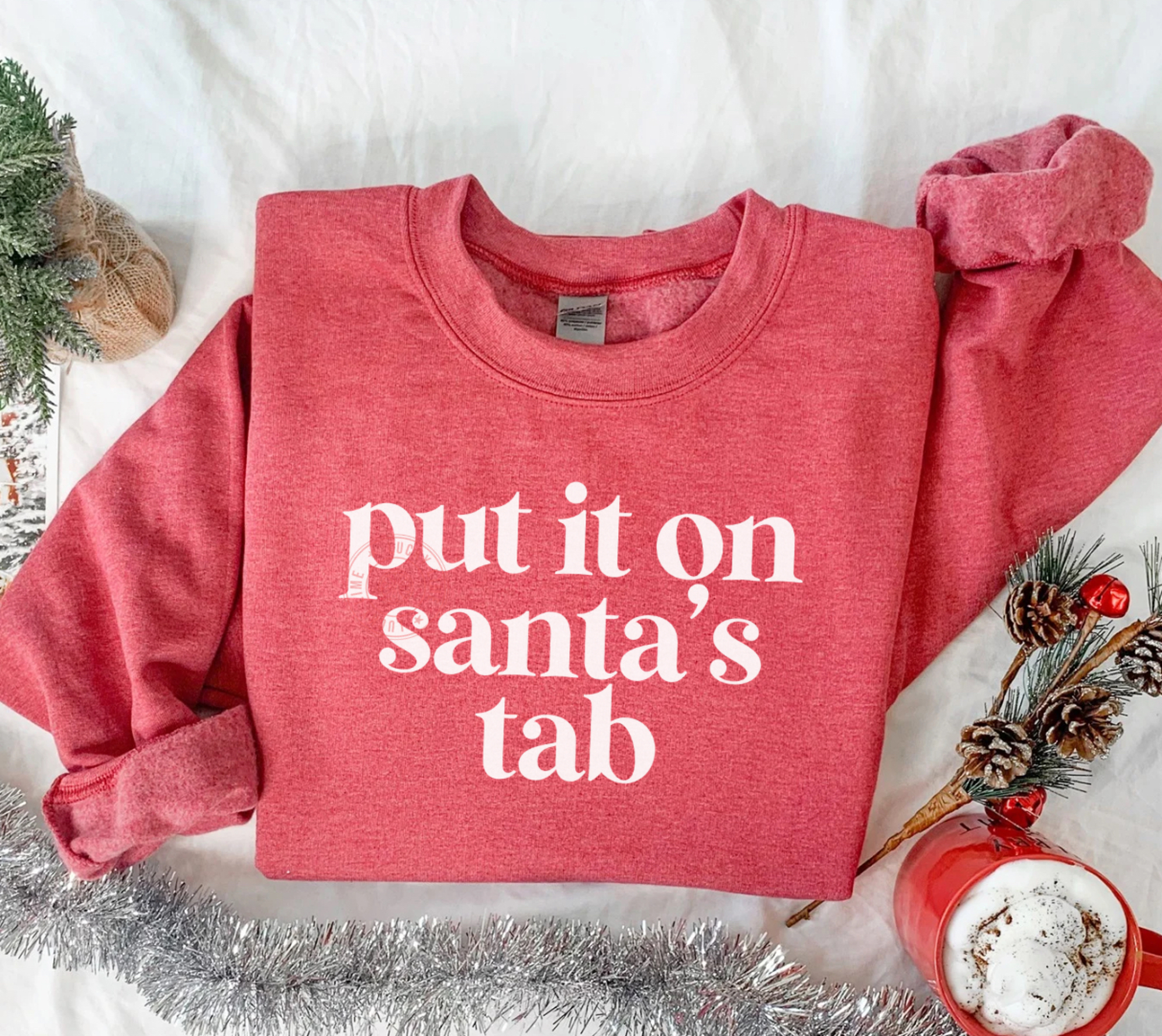 Put it on Santa’s Tab Sweatshirt, Funny Christmas Sweatshirt, Funny Santa Shirt, Festive Holiday Sweater for Women