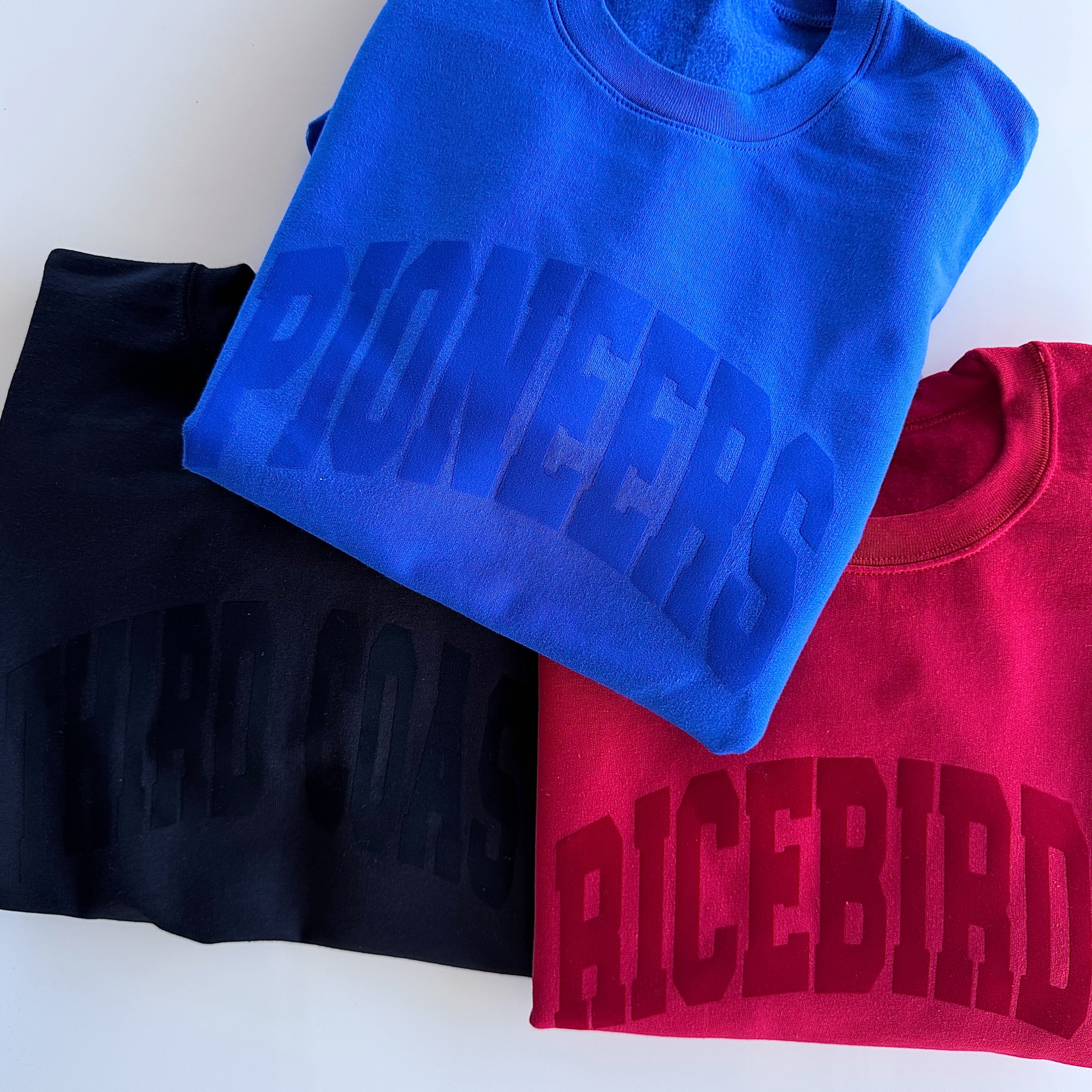 Custom Oversized One-Word Sweatshirt | Tonal | Raised Flocked Lettering