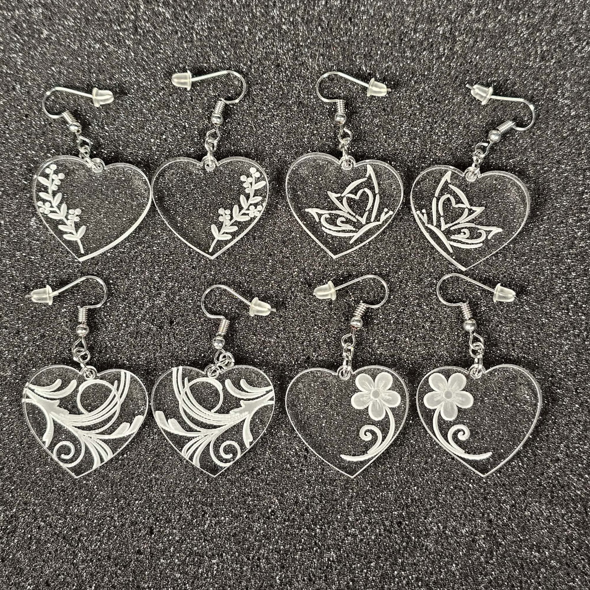 Celebrate love in style with our Heart Earrings! These charming acrylic earrings are laser-cut into perfect heart shapes and engraved with ten unique, intricate designs, making them the ideal accessory for Valentine’s Day—or any day you want to share the love.