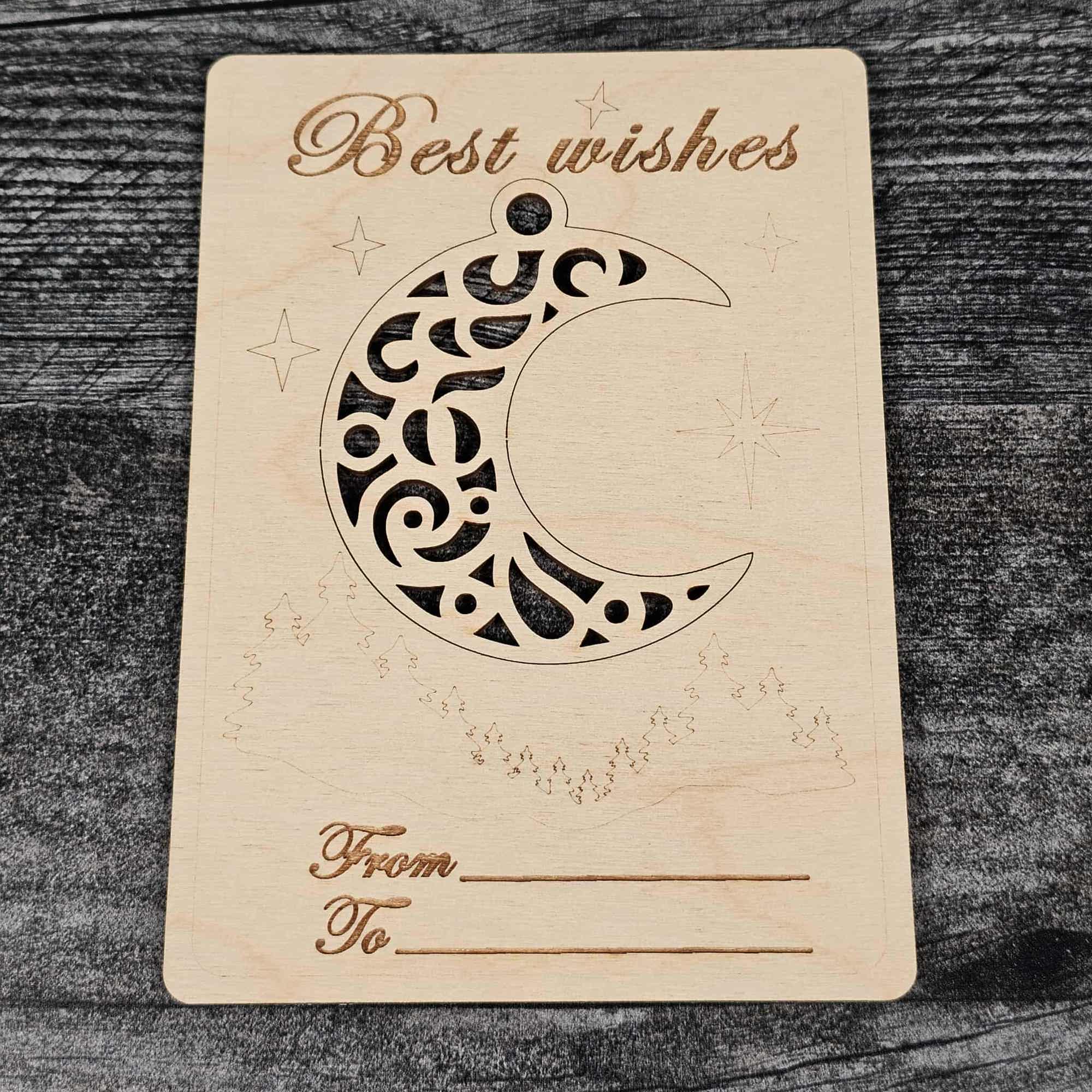 Each card is laser cut and engraved on smooth, natural wood and features a beautifully detailed ornament that can be popped out and hung on the tree using the included twine. The card itself has “To:” and “From:” lines, making it a sweet, gift-ready note and a lasting ornament all at once.