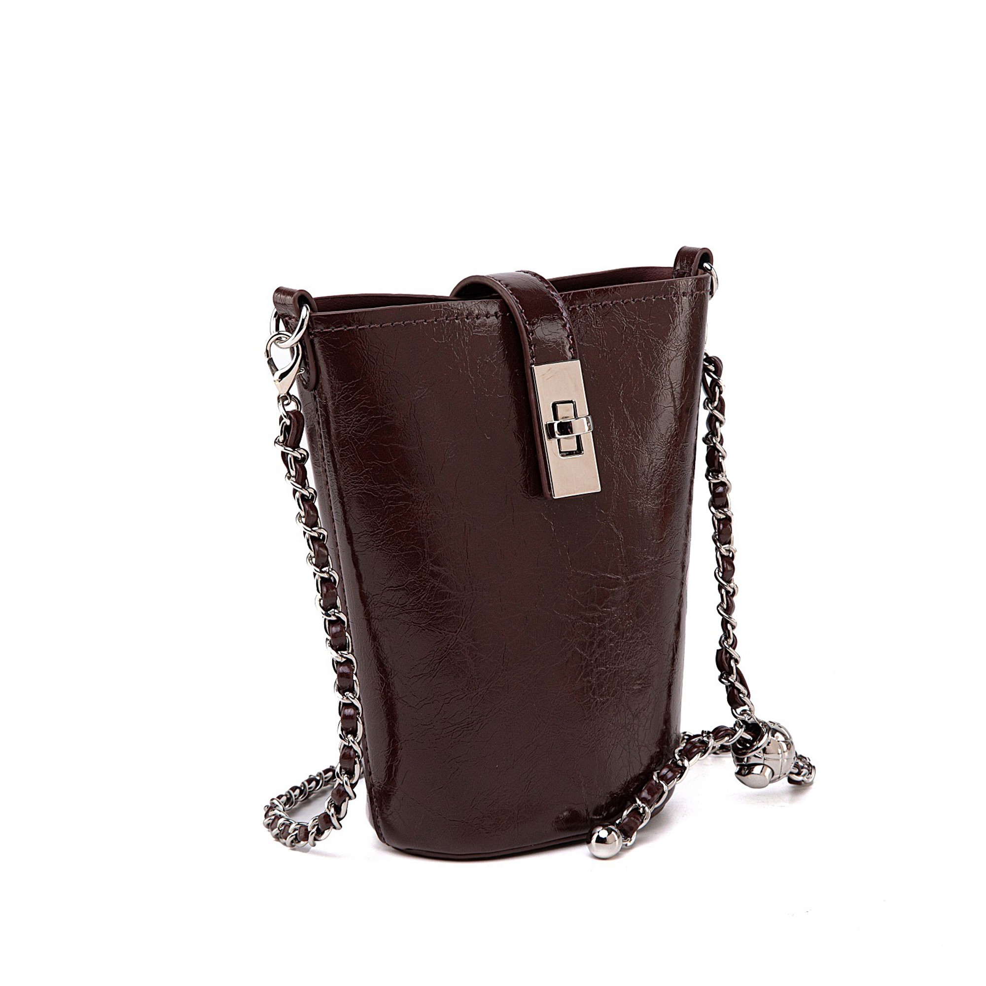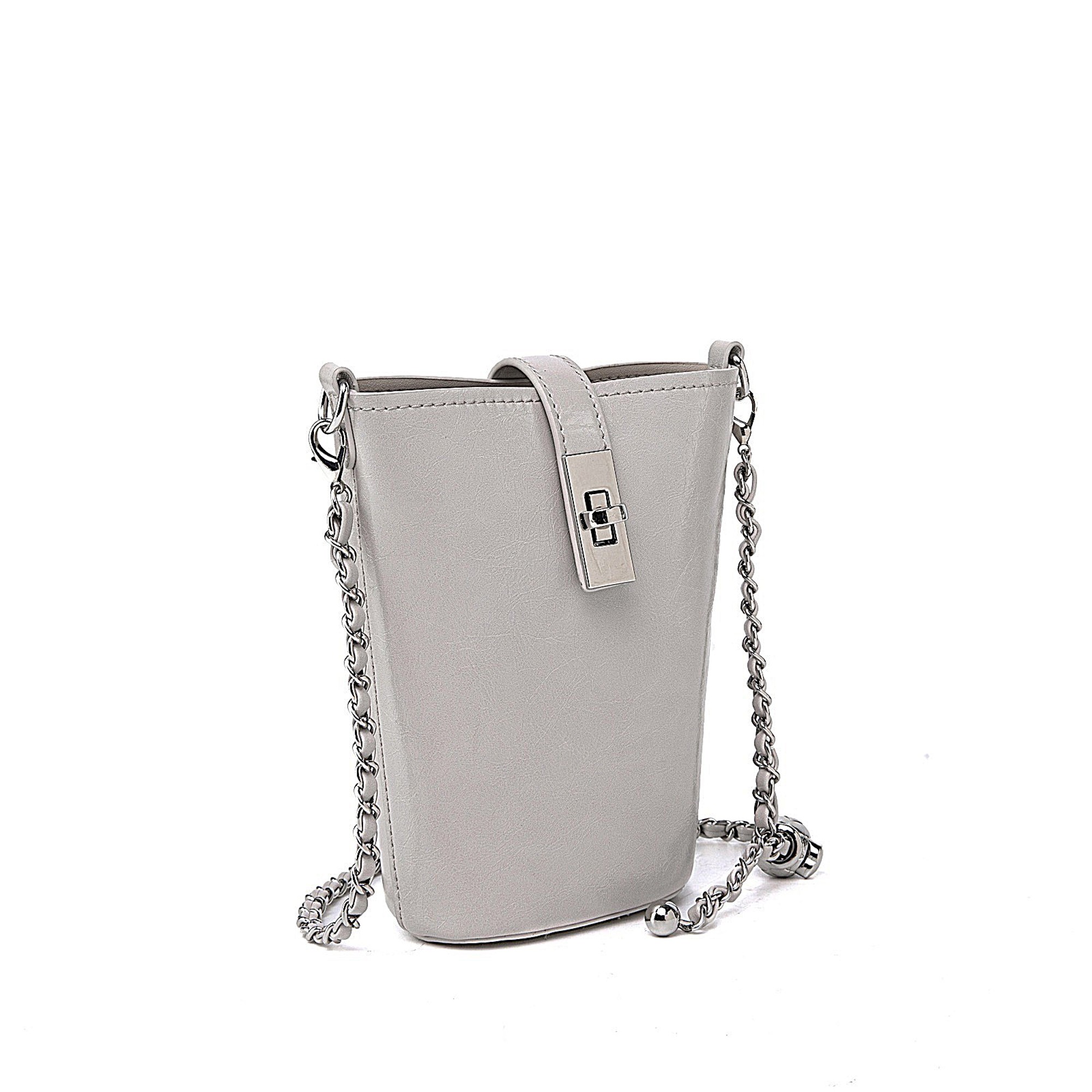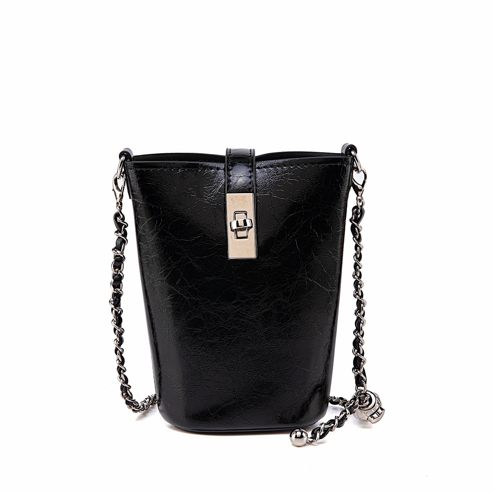 Chic and compact, this faux leather mini bucket bag makes a bold statement with its modern silhouette and glossy finish. Designed to hold just your essentials, it features a structured shape with a turn-lock flap closure that keeps your items secure while adding a refined touch.