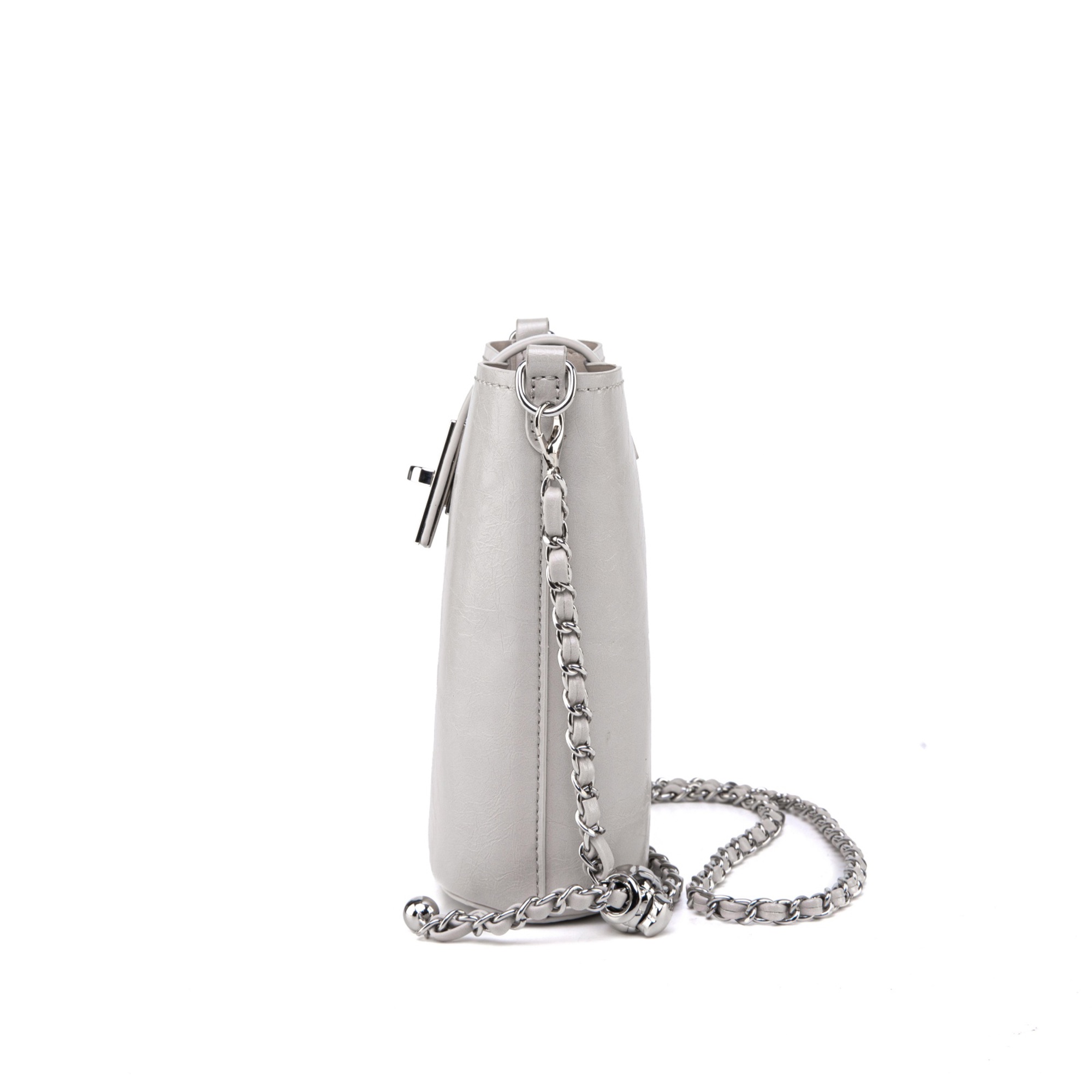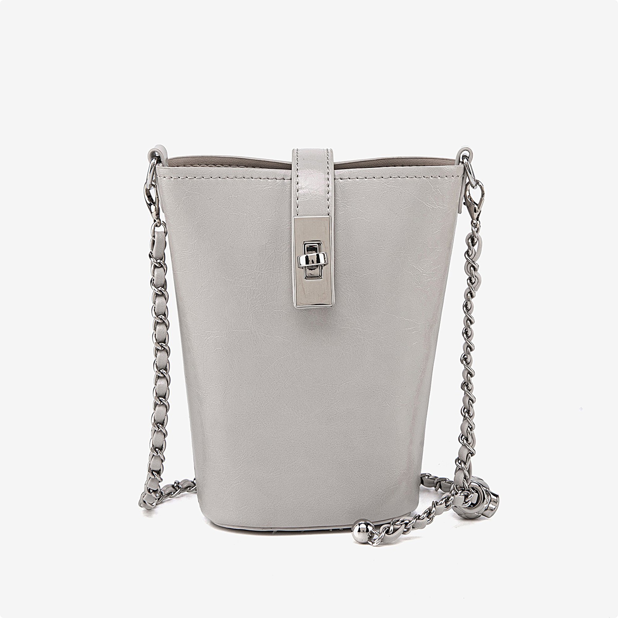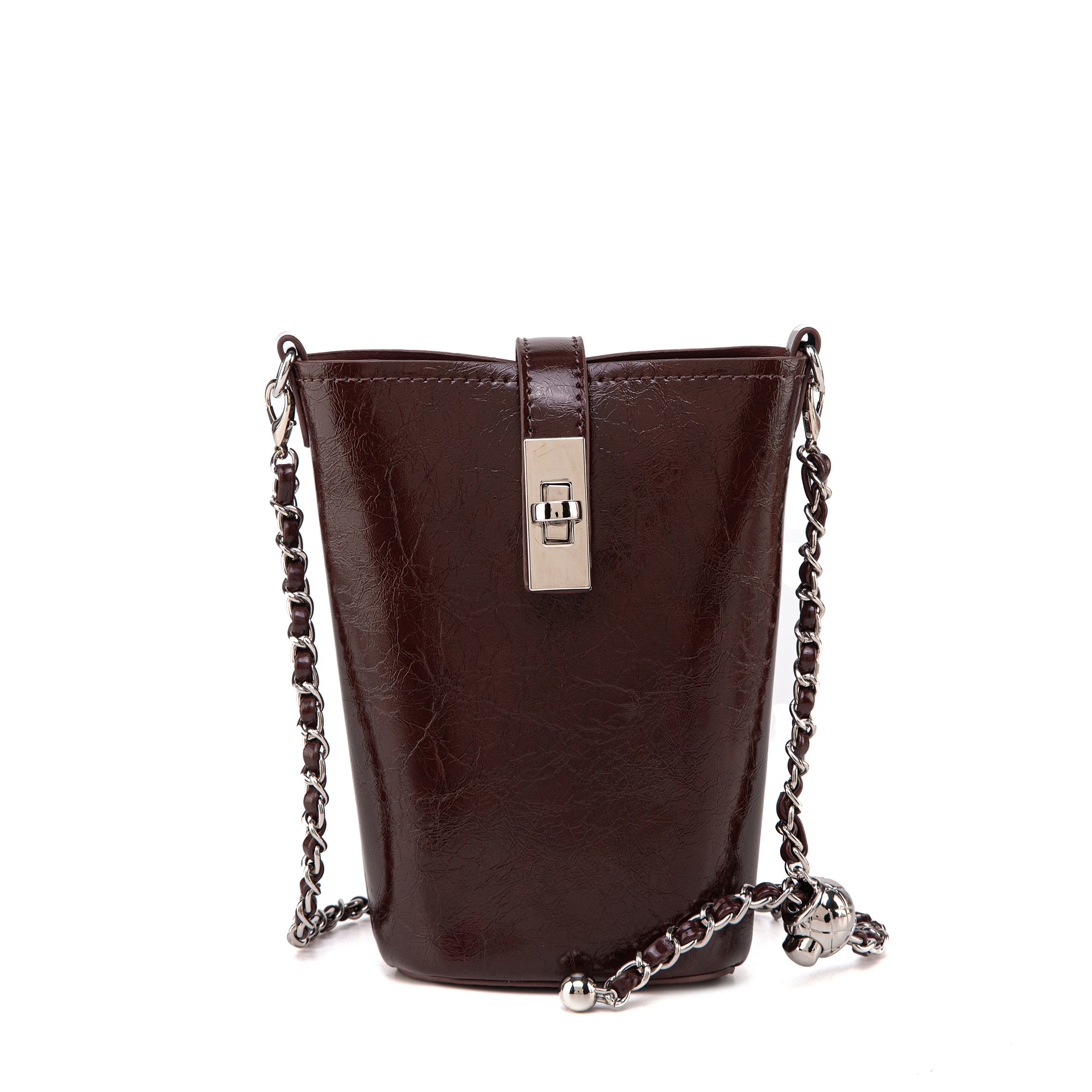 Chic and compact, this faux leather mini bucket bag makes a bold statement with its modern silhouette and glossy finish. Designed to hold just your essentials, it features a structured shape with a turn-lock flap closure that keeps your items secure while adding a refined touch.