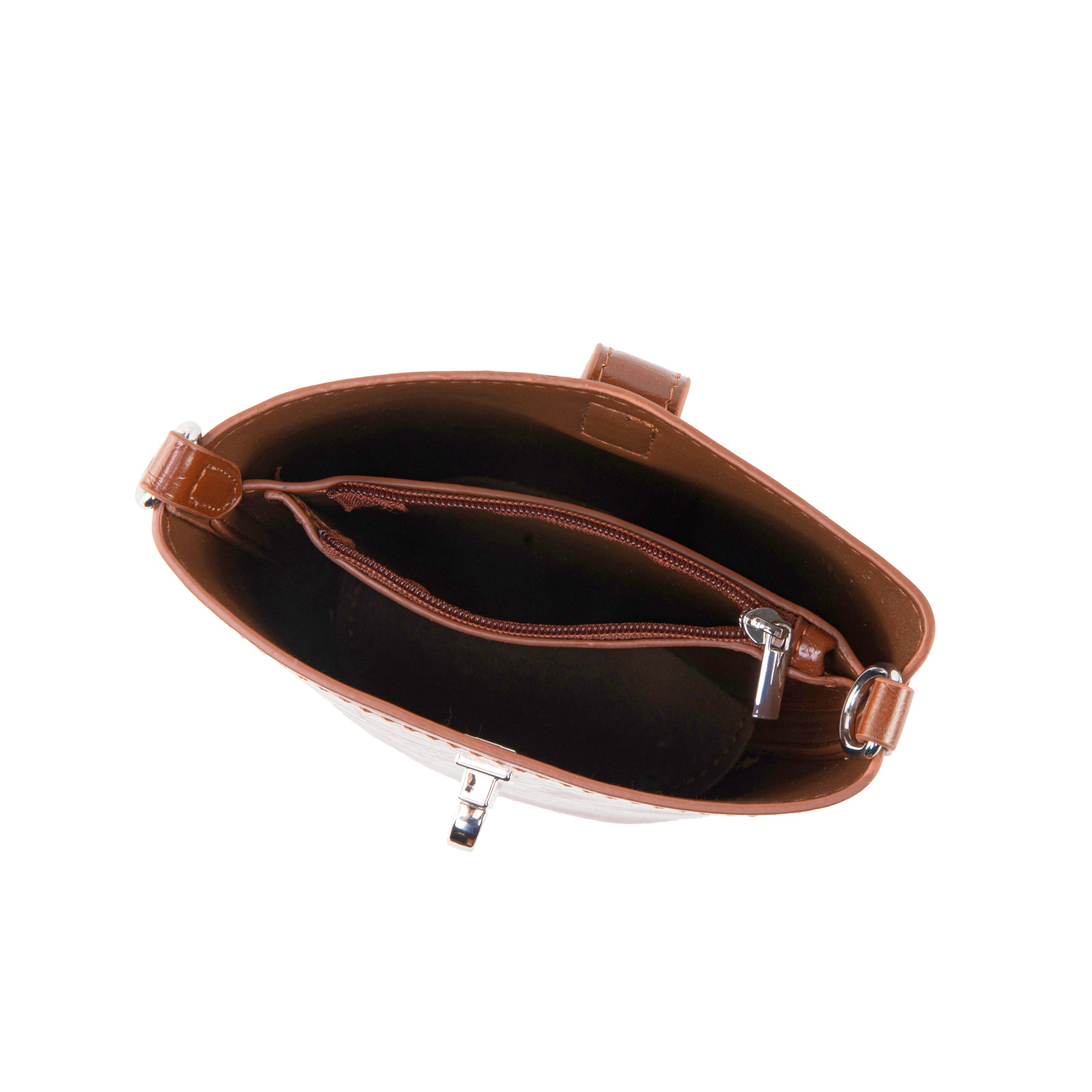 ● Interior features a center zip compartment