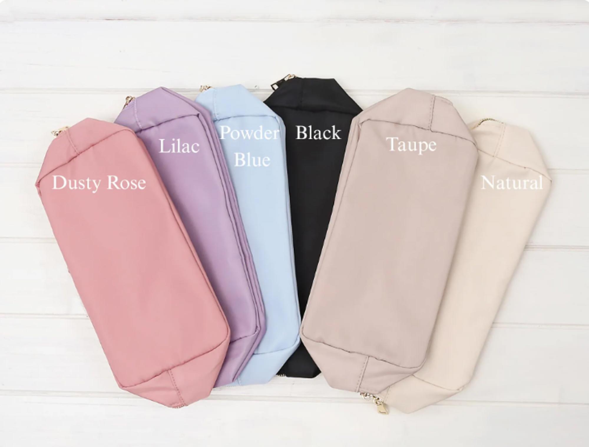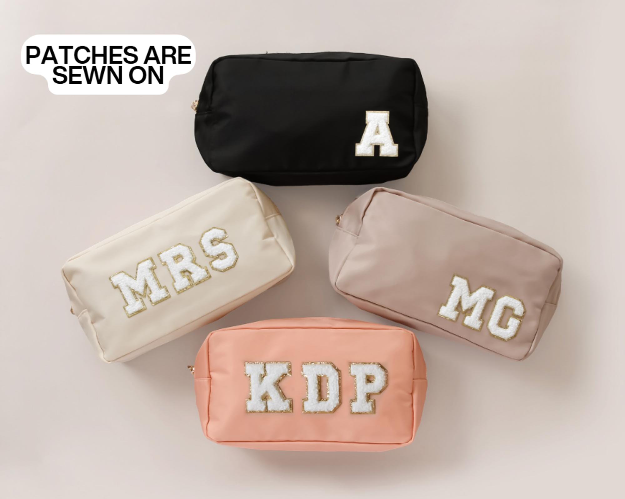 These stylish personalized nylon pouches with soft chenille patches are the perfect gift for any occasion! Whether you're spoiling your bridesmaids, organizing your travel essentials, or gifting a friend, this bag brings personality and practicality together.