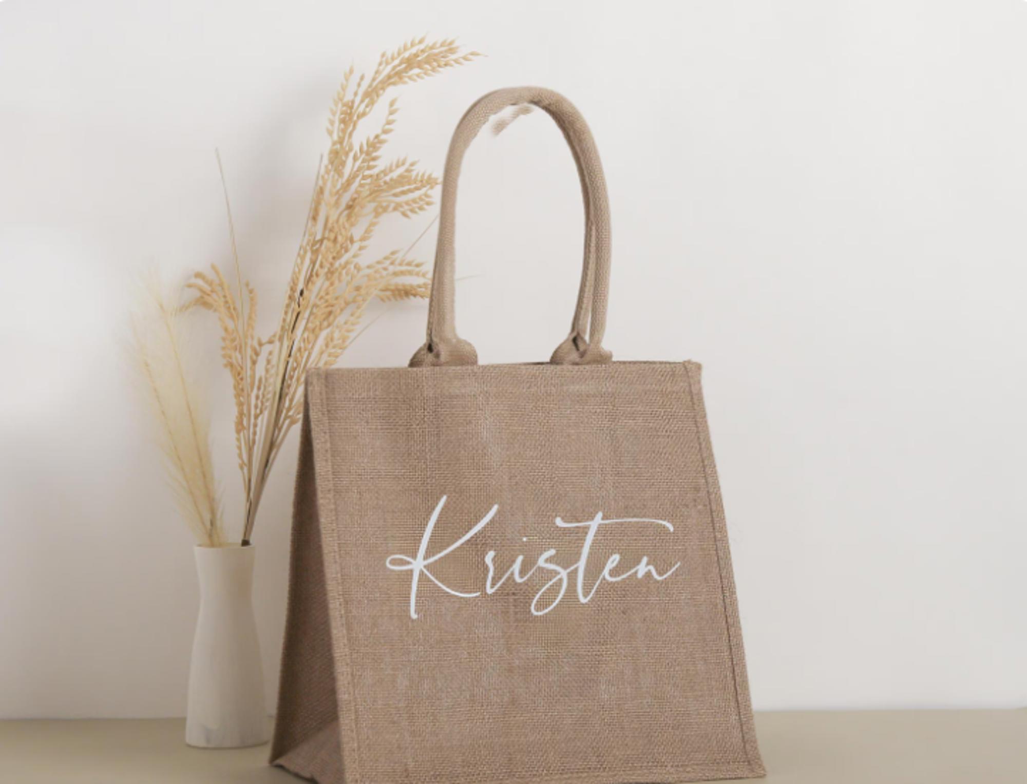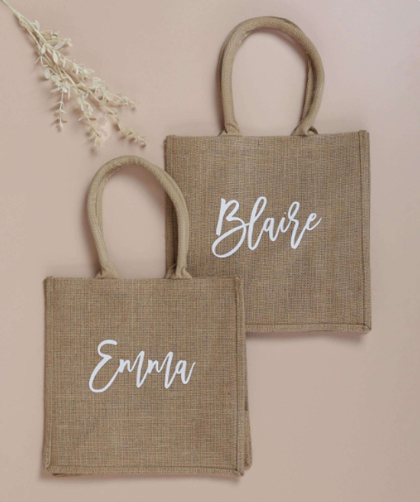 Personalized Jute Tote Bag, Bridesmaid Gift, Bridal Party Bag, Gift for Her, Everyday Tote