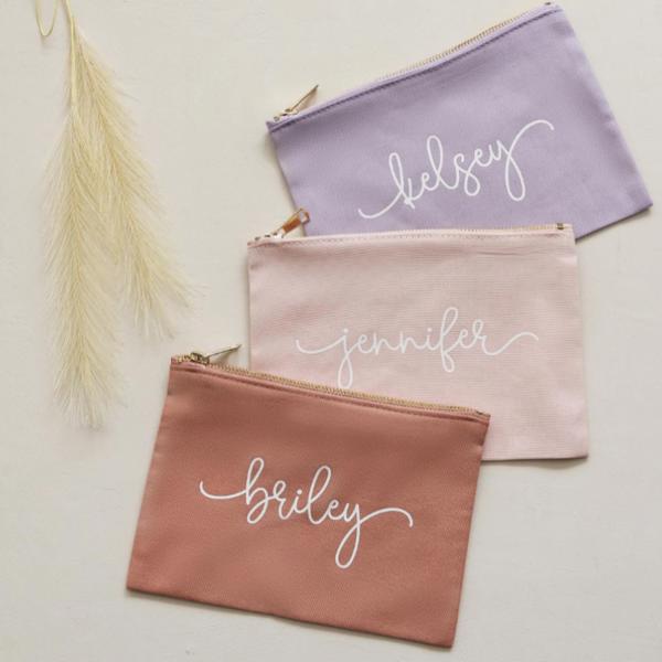Personalized Makeup Bag | Custom Vegan Leather Cosmetic Bag for Bridesmaid Gifts