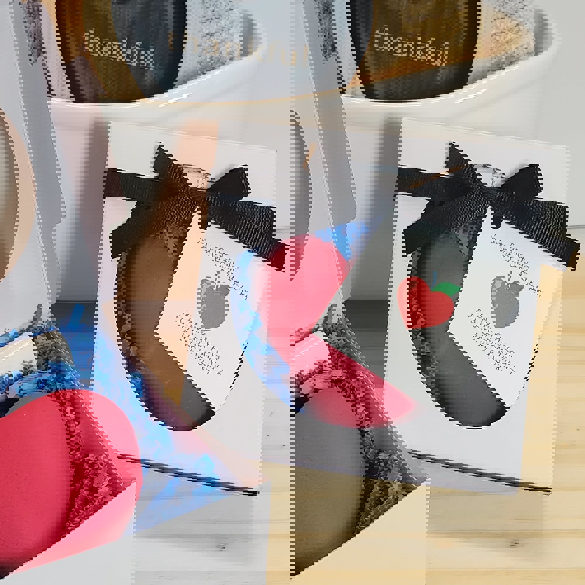GIFT SET INCLUDES: One HEART "TEACHING IS A WORK OF HEART" Themed Bath Bomb + Lavender Lip Balm packaged in a gift box with coordinating ribbon and themed tag.