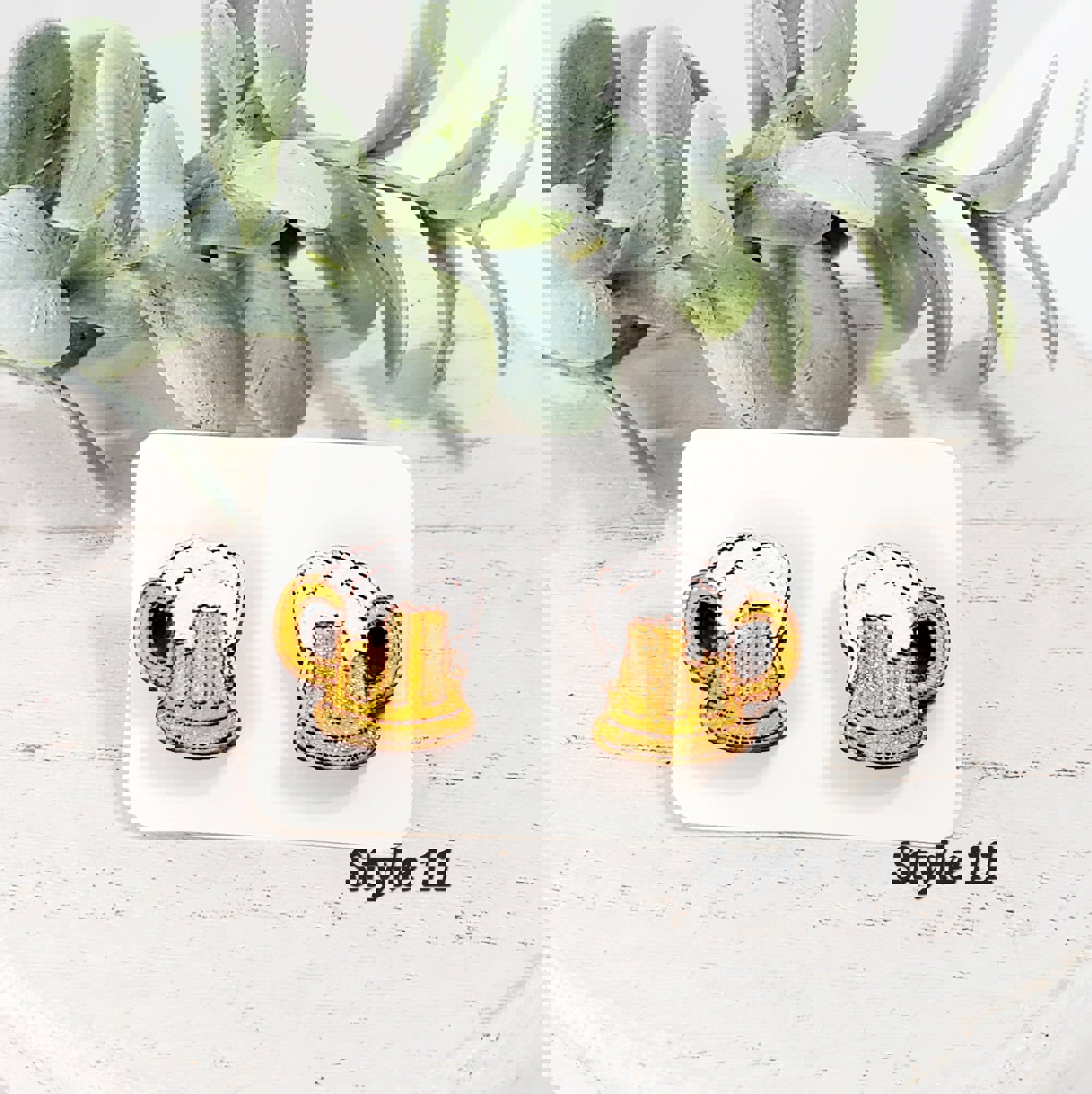 Product Details: Hand painted wood studs Size: 12MM Surgical steel posts for sensitive ear Handmade in USA