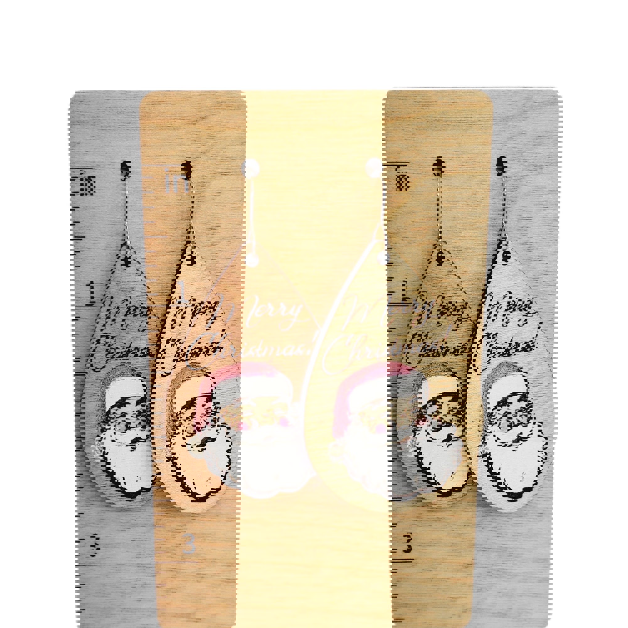 Merry Christmas Pink Santa Earrings
