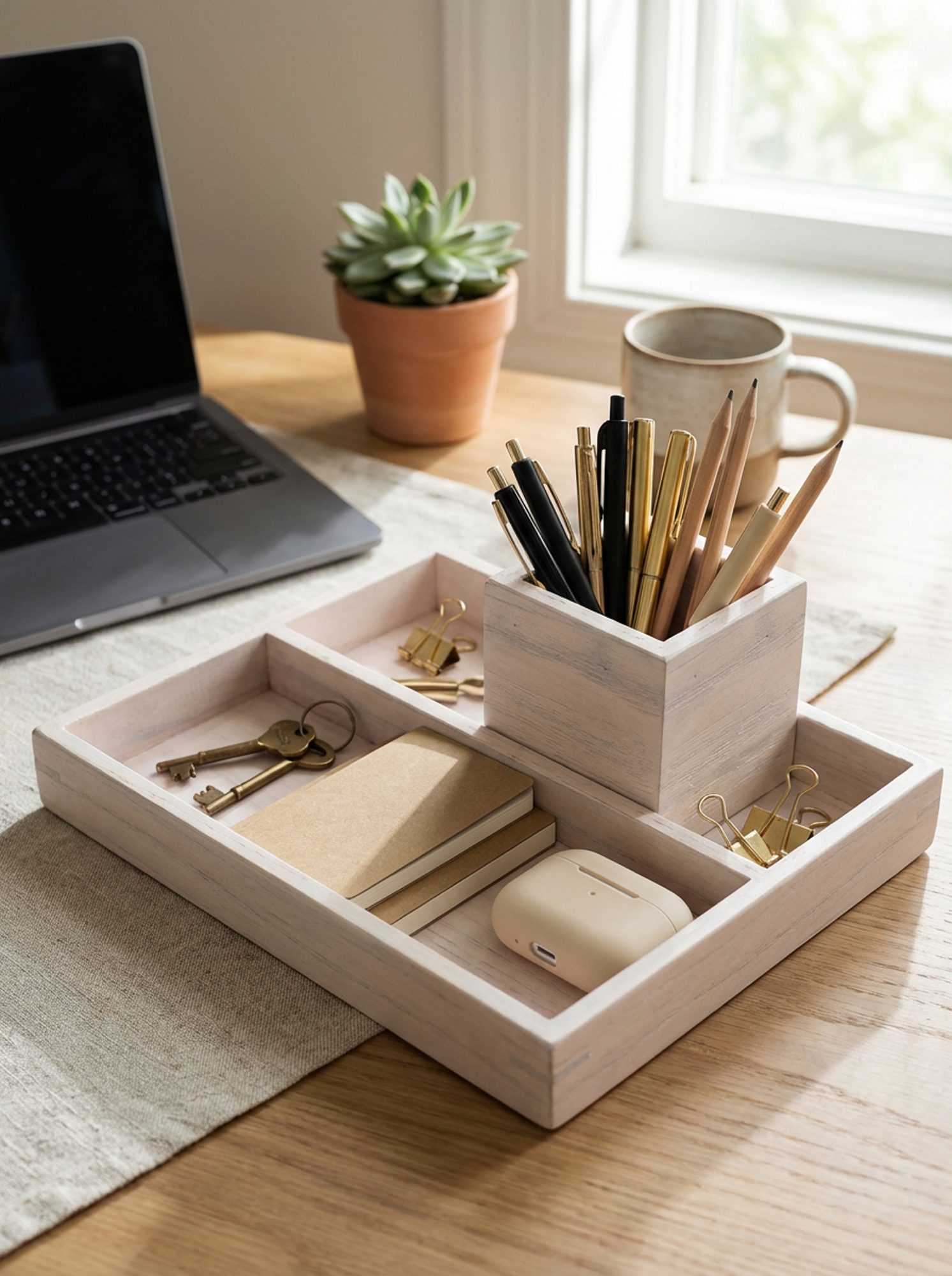 Its natural wood grain adds a modern-rustic aesthetic that pairs well with minimalist, farmhouse, Japandi, and Scandinavian-inspired décor. This piece is a practical yet giftable choice for teacher appreciation gifts, Father’s Day gifts, housewarming presents, student desk setups, and small business accessories.