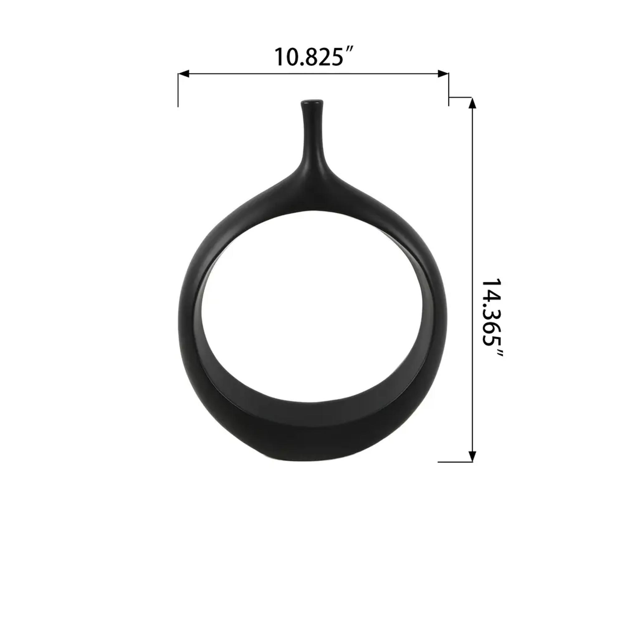 14.37" Round Black Open Oval Ceramic Decorative Accent