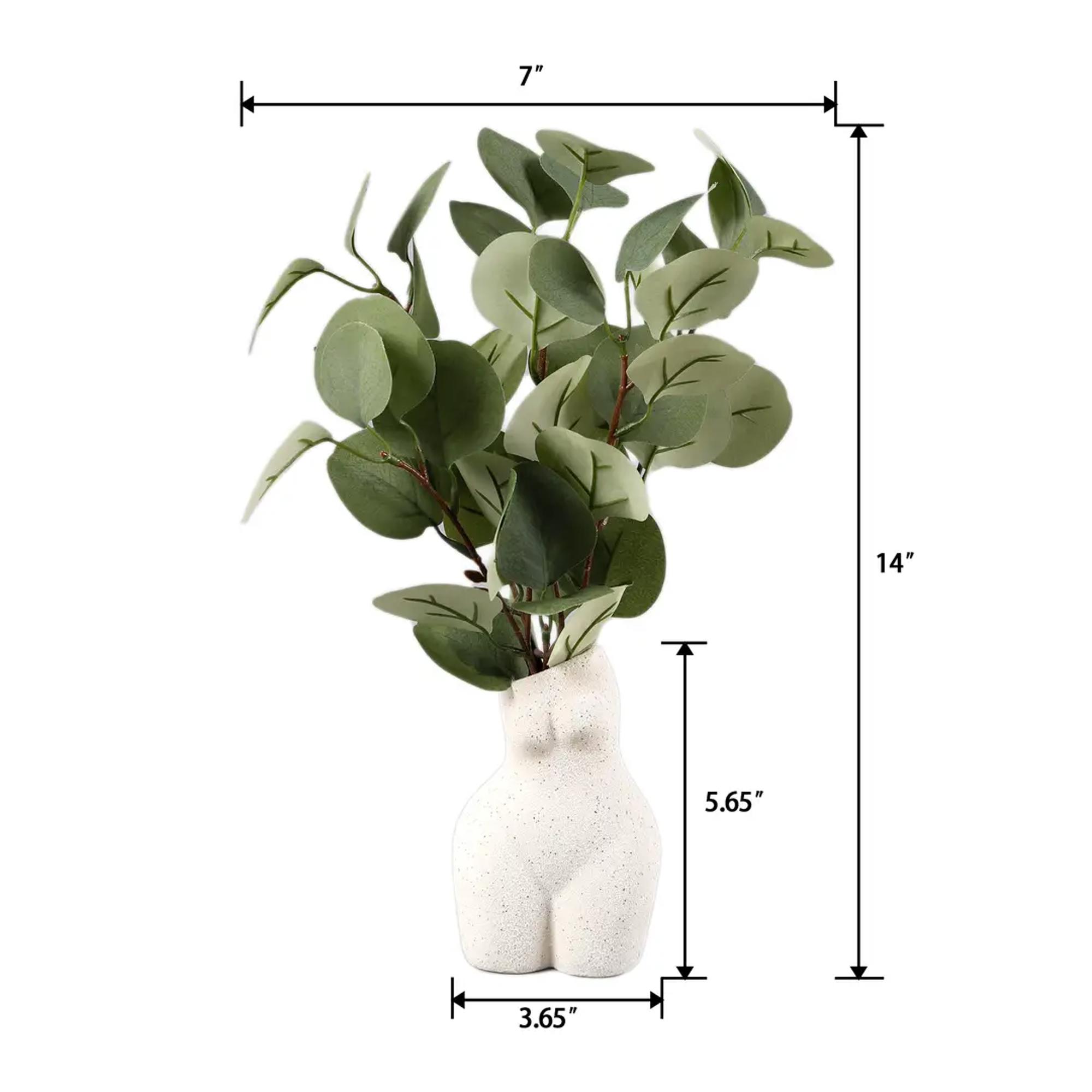 Add a modern, artistic touch to your décor collection with this 14” Faux Eucalyptus Arrangement in a Body-Shaped Ceramic Vase. Designed for boutiques, lifestyle shops, and home décor retailers, this sculptural piece blends contemporary form with soft, natural greenery—perfect for stylish shelf displays and ready-to-gift assortments.