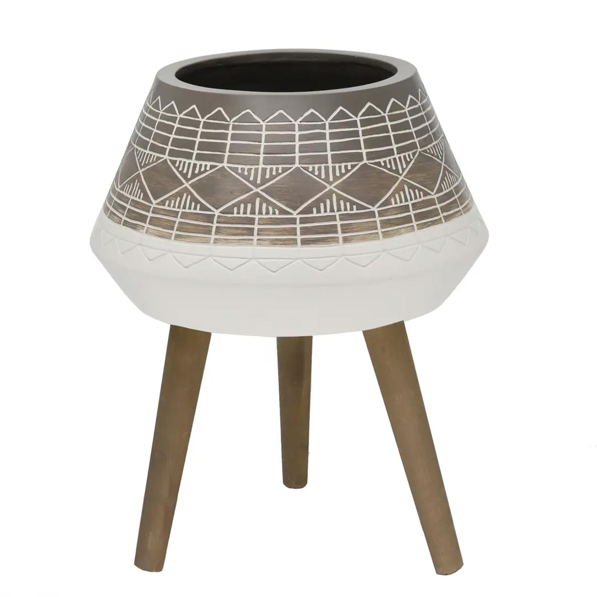 Decorate Your Space With Our Tribal Fiberglsas Planter With Legs. Made Of Superior Fiberglass Material, Which Is Stronger And Lighter Than Cement, This Planter Will Not Disappoint. Hand-Crafted By Artisans, Our Fiberglass Planter With Legs Will Help Upgrade Your Plant Game In Style. Made Of Fiberglass With A Tribal Pattern And Painted Cream And Brown, This Planter Will Add A Bit Of Chic Nature To Your Living Space. Buy A Few At A Time, So You Can Start Your Own Little Garden Indoors!