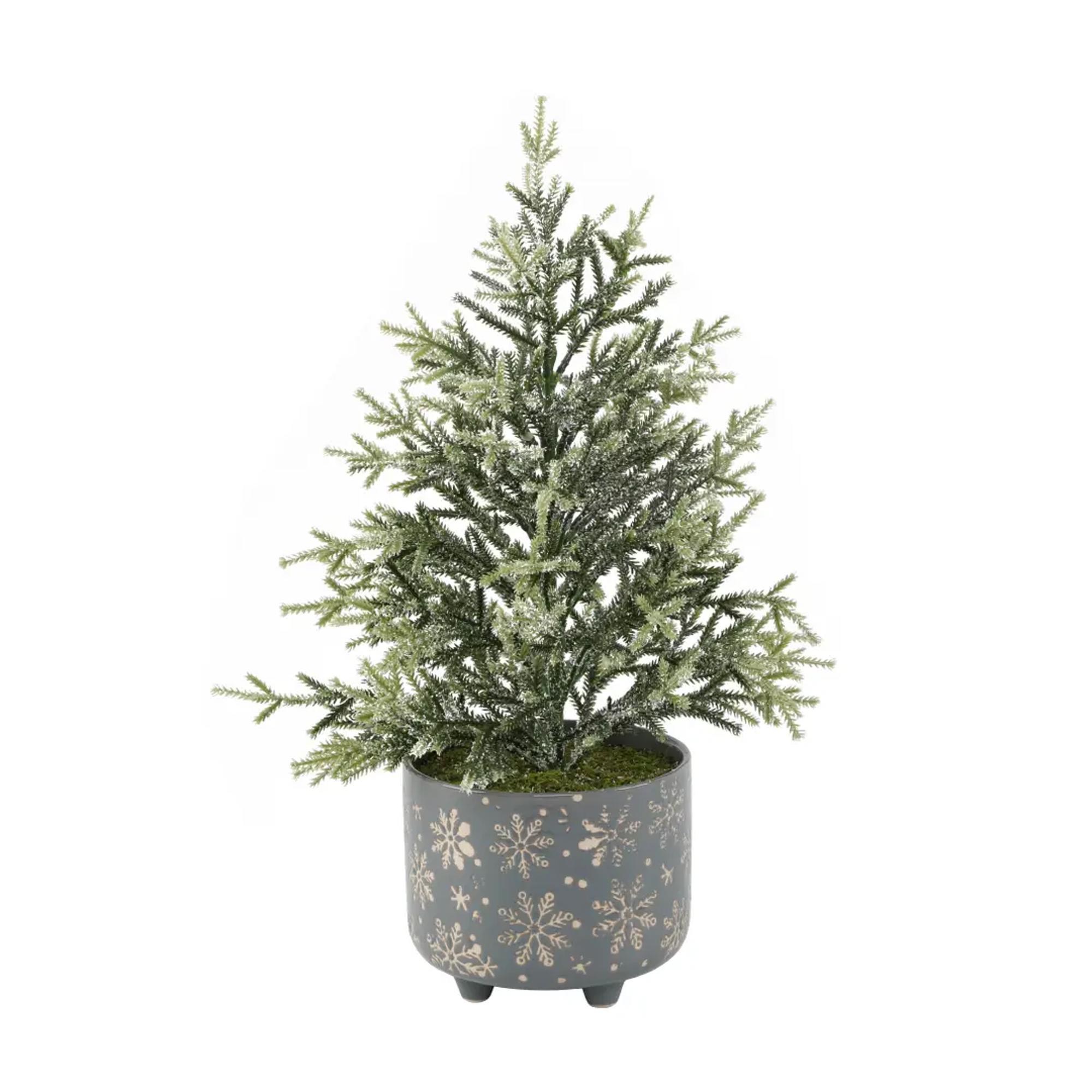 19" Frosted Tree in Snowflake Planter