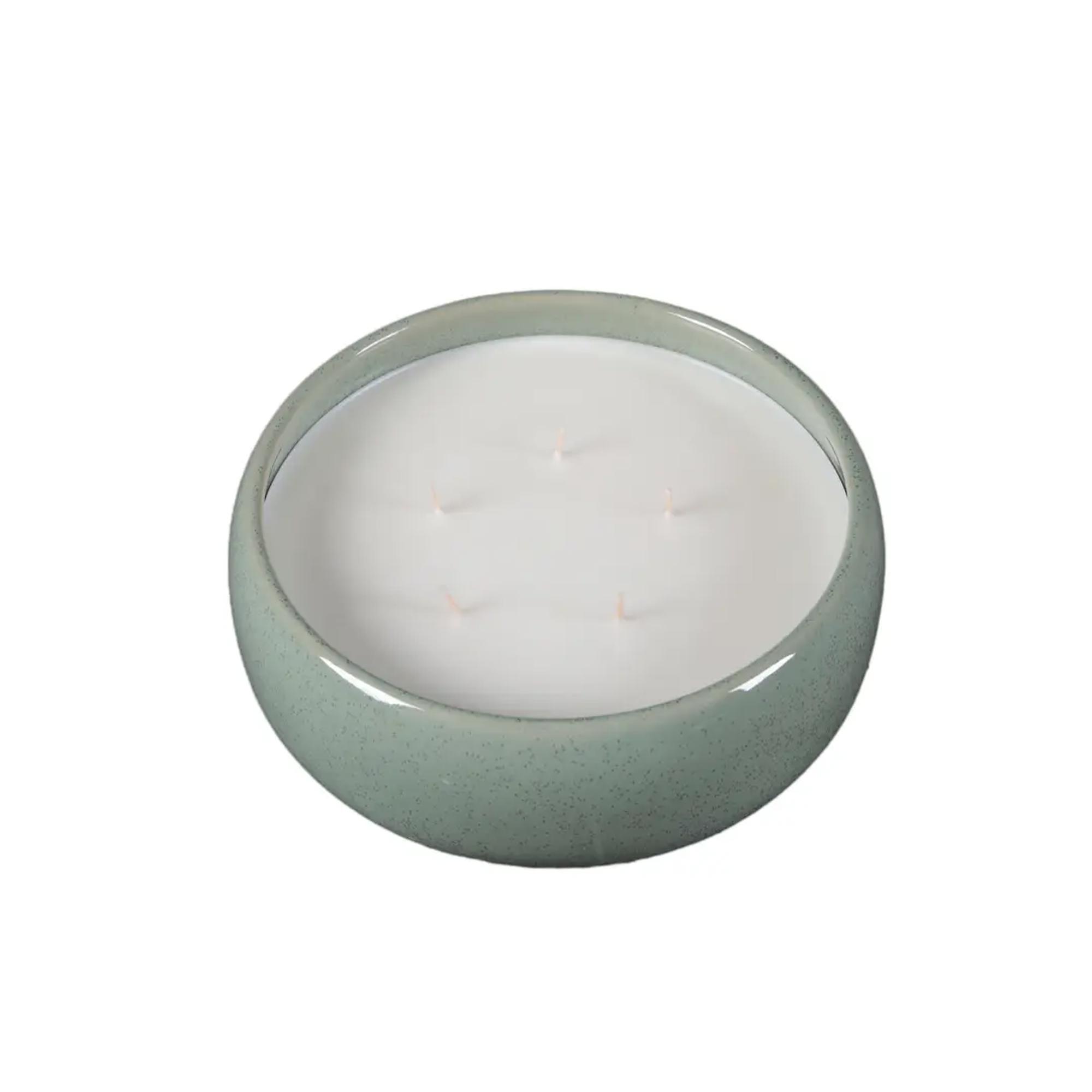 3-Wick Ceramic Bowl Candle in Soft Green Finish - Peony
