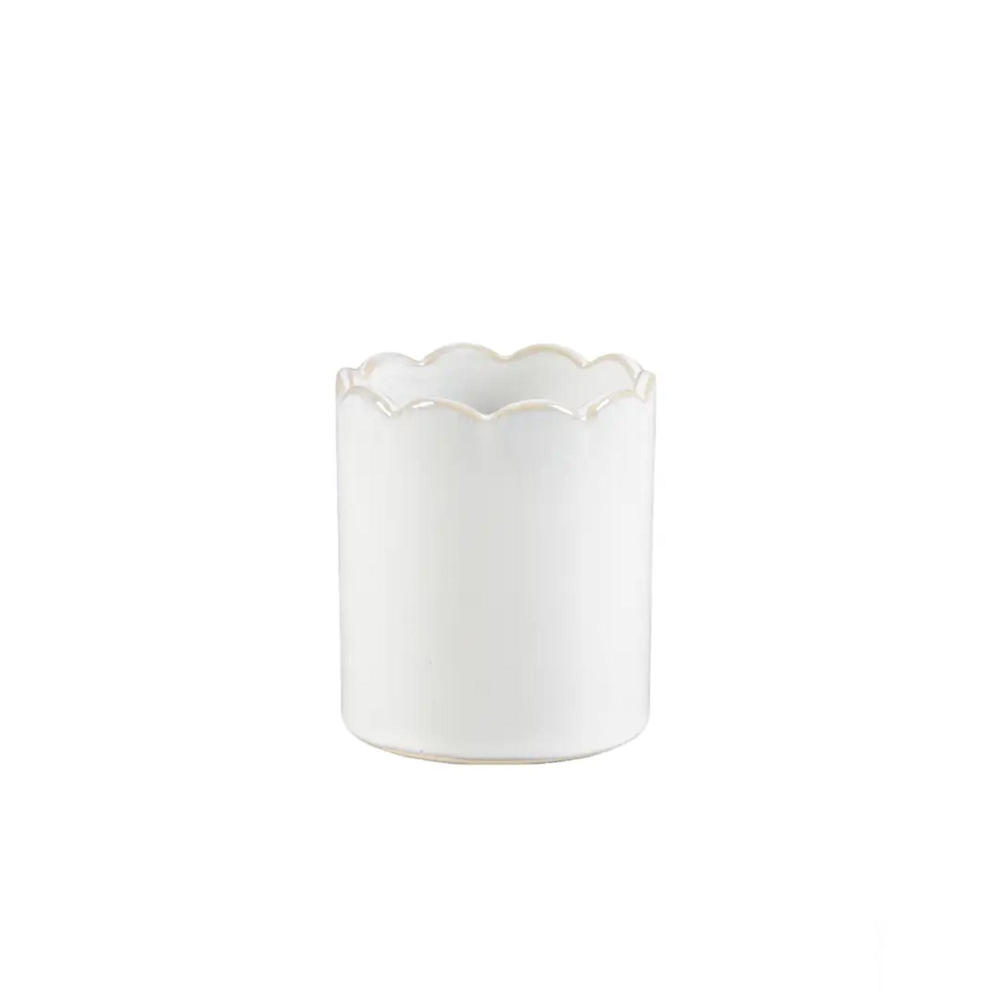 Bring soft elegance to any workspace with this 4" Ceramic Scalloped Edge Pencil Holder, a beautifully crafted desk accessory featuring a smooth ivory finish and a delicate scalloped rim. Its minimalist design makes it a perfect addition to home offices, boutique counters, dorm rooms, vanities, and bedside tables.