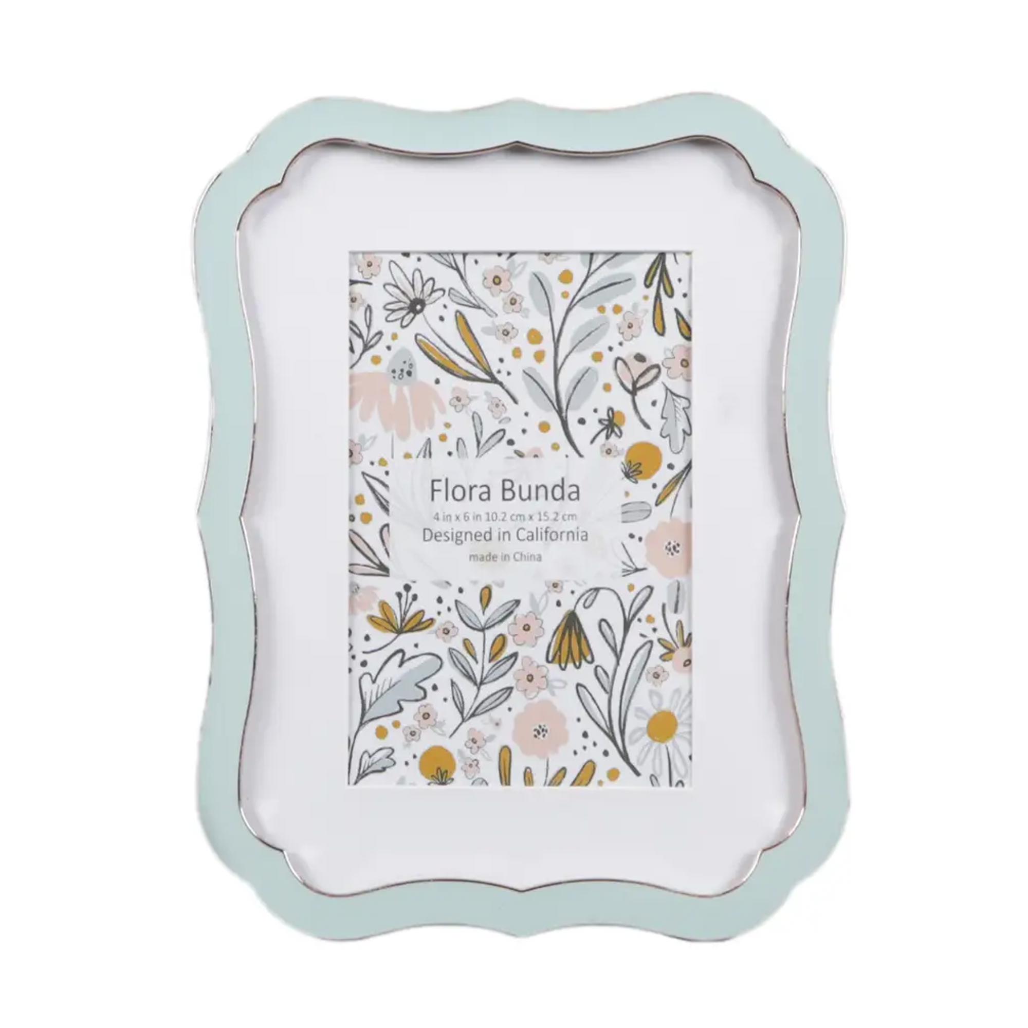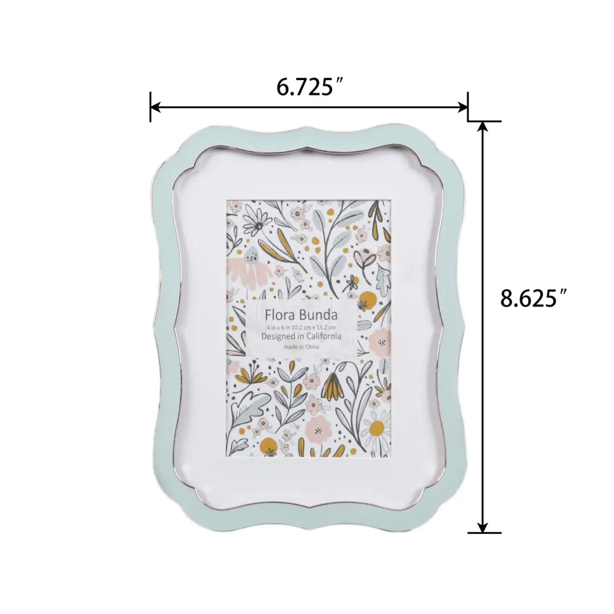 Add a touch of elegance to your cherished memories with this scalloped-edge ceramic photo frame. Featuring a glossy white finish accented with a soft pink trim, this frame is designed to hold a 4" x 6" photo. The delicate scalloped edges bring a blend of timeless charm and modern style, making it a perfect addition to any room. Ideal for desks, mantels, or shelves, this frame beautifully showcases your favorite moments. Thoughtfully designed in California, it’s an excellent choice for personal use or gifting.