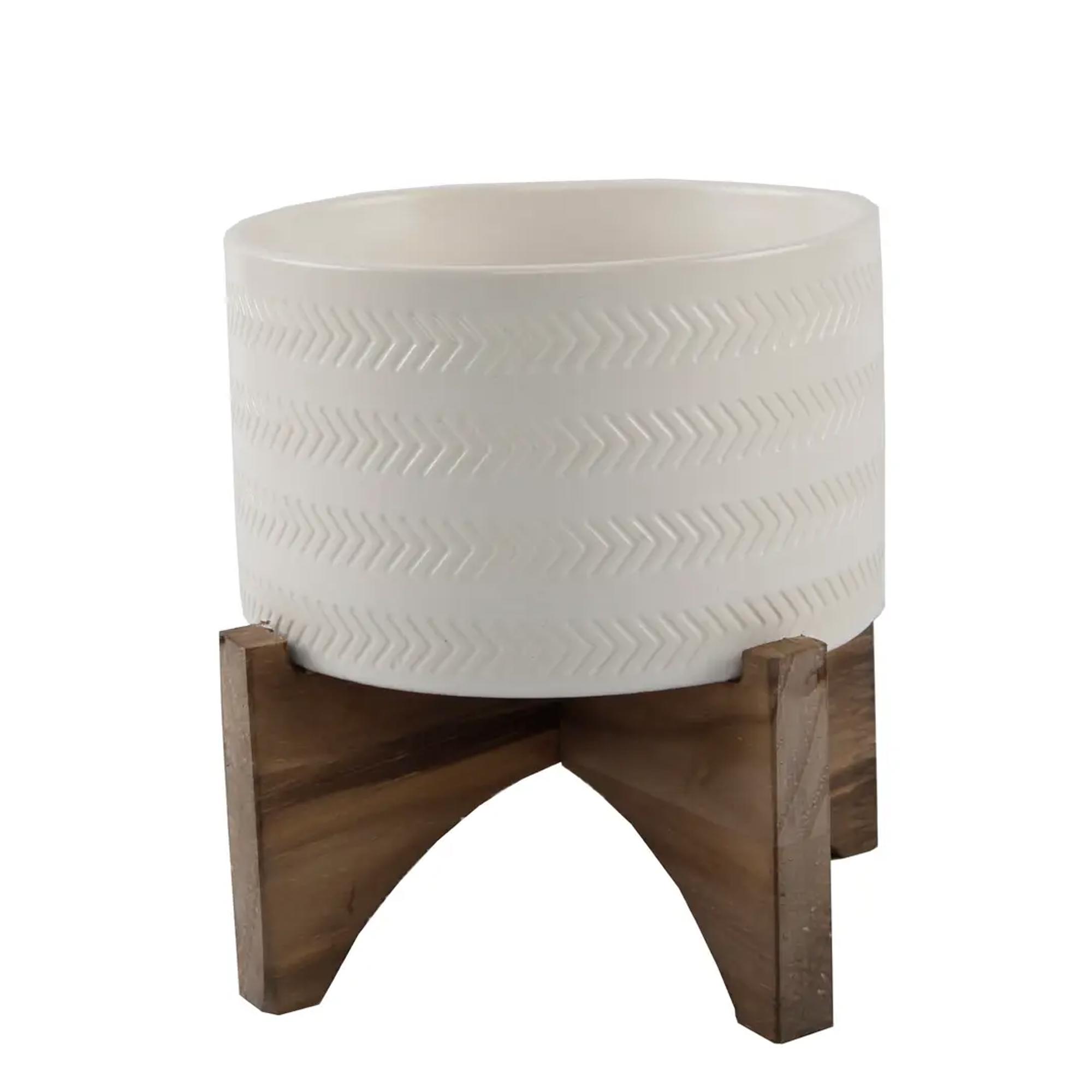 Measurement(Inch): 6.25 X 6.25 X 6.25. Intersize(Inch): 4.75 X 4.75 X 3. Capacity(Oz):31.75. Material: Ceramic,Wood,Glue. Color: Matte White** No Drainage Hole, For Indoor Use Only.