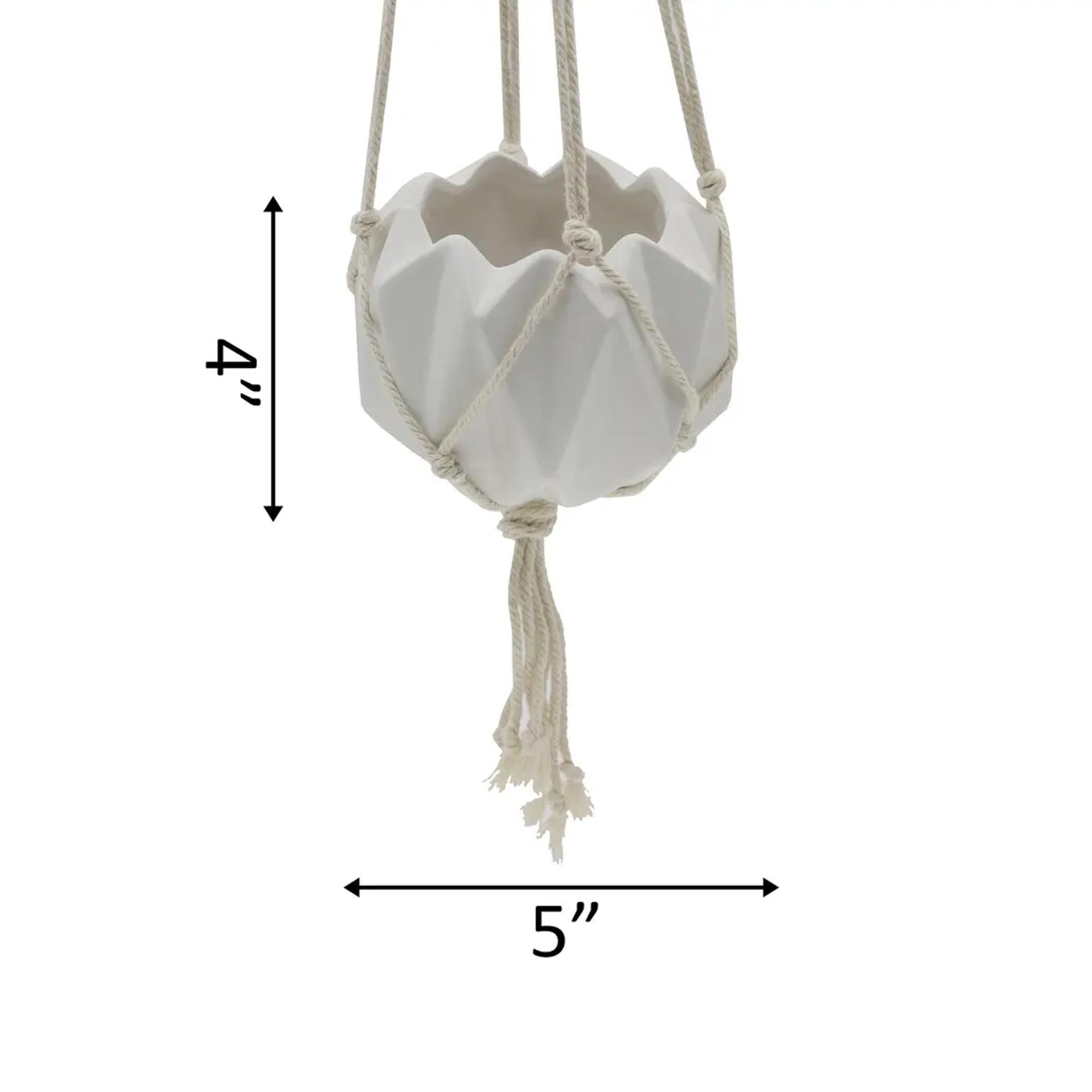 Measuring 5 inches wide and 4 inches tall, this compact planter is perfect for small succulents, trailing plants, or faux greenery. The durable ceramic pot is paired with a sturdy rope hanger, allowing you to easily display it in living rooms, kitchens, bathrooms, patios, or retail displays.