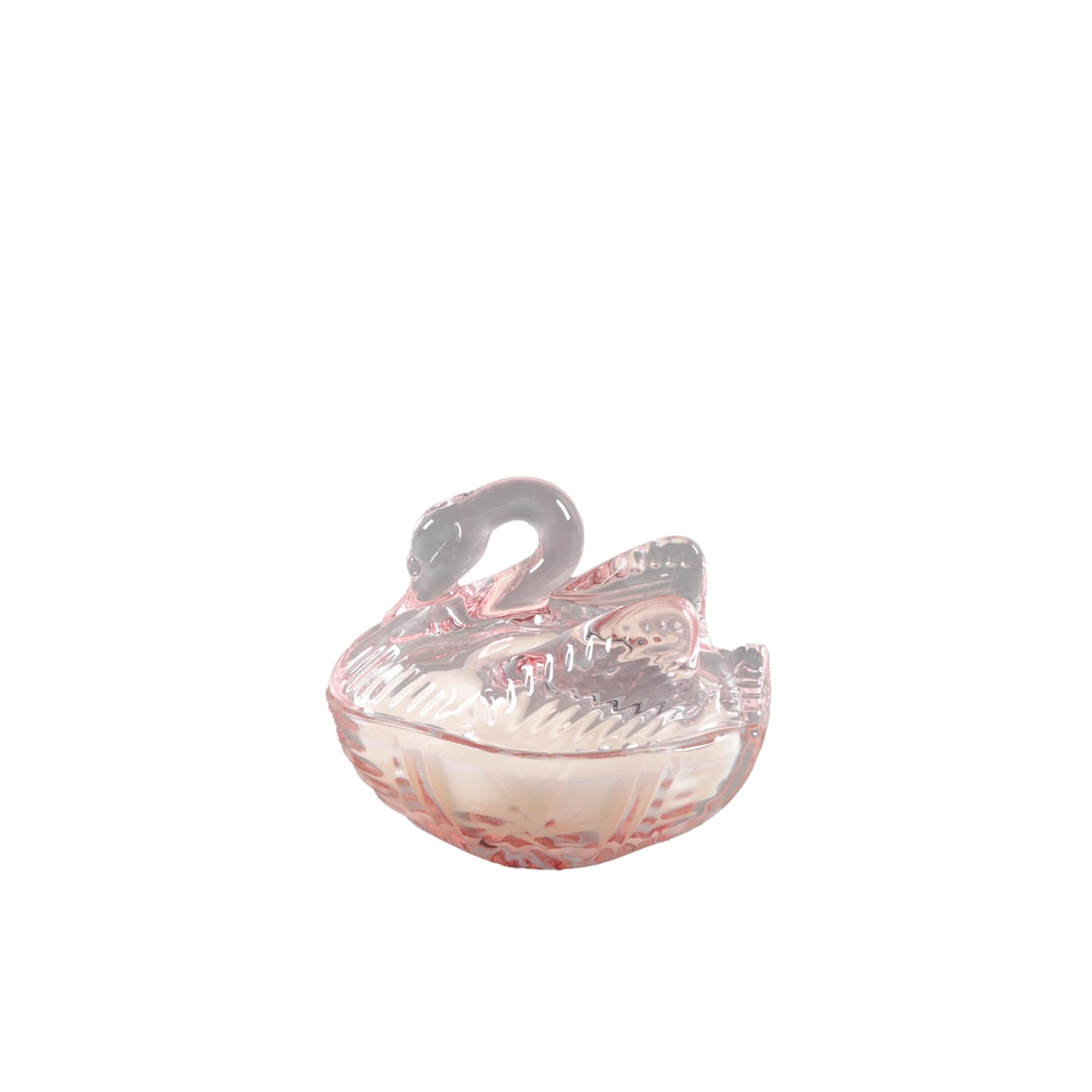 4.5 oz scented candle in a swan-shaped pink glass jar