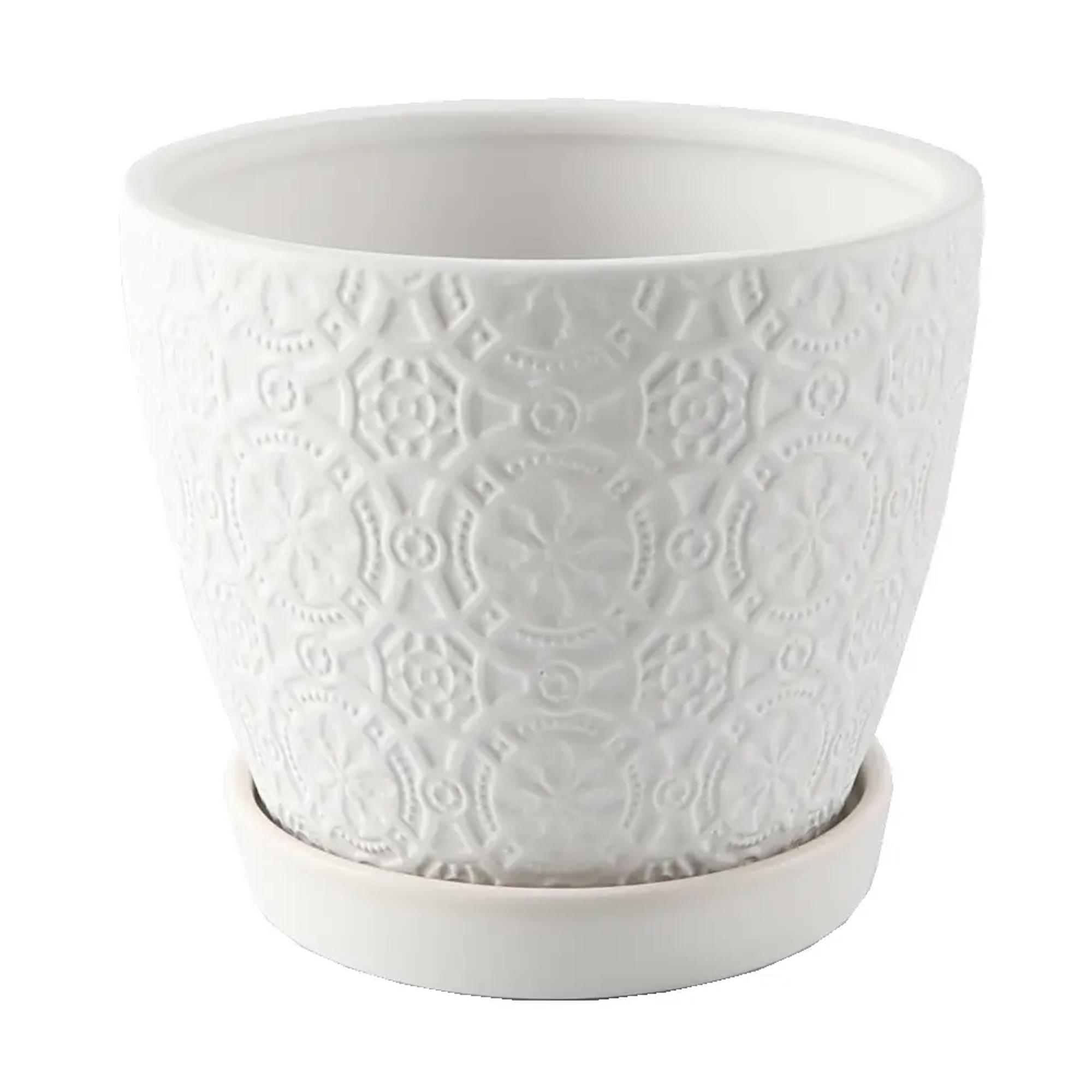 Add a touch of clean, modern style to your plant collection with this White Textured Ceramic Pot featuring a matching saucer. Designed with a subtle embossed pattern, this planter brings depth and elegance while maintaining a minimal aesthetic that complements any home décor style—from Scandinavian and modern to farmhouse and boho.