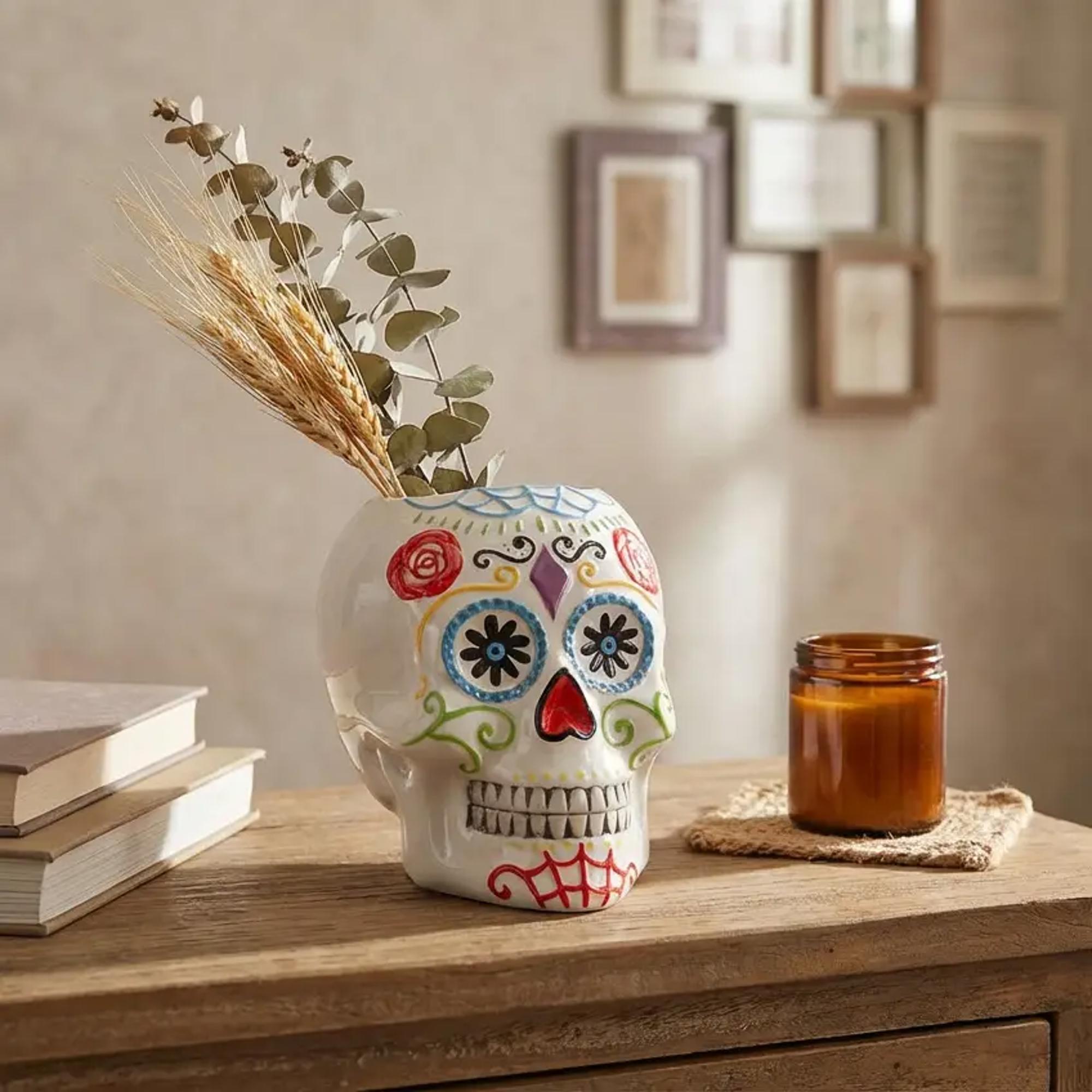 Whether you're celebrating the Day of the Dead, curating a themed Halloween vignette, or simply love eclectic statement décor, this planter is sure to stand out.
