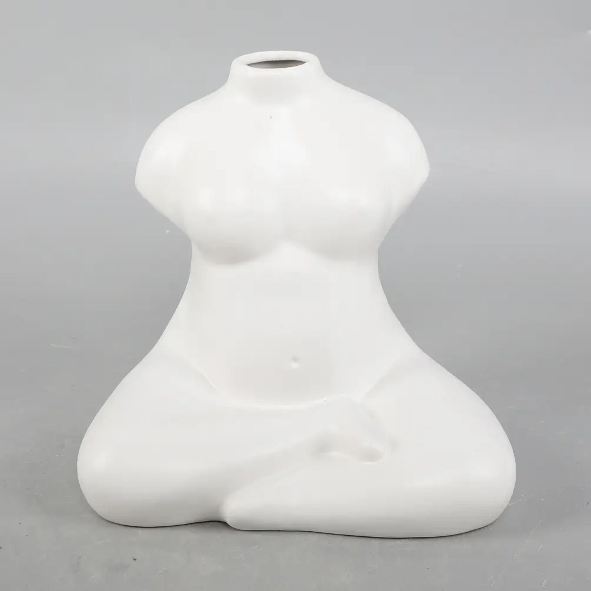 Celebrate form, femininity, and modern artistry with this White Ceramic Female Torso Sitting Vase. Crafted with a smooth matte finish, this sculptural piece features a seated female figure with soft, organic curves that create a striking yet serene presence. The minimalistic neck opening is ideal for showcasing dried florals, single stems, or delicate greenery, while the vase itself stands beautifully as a standalone art piece.