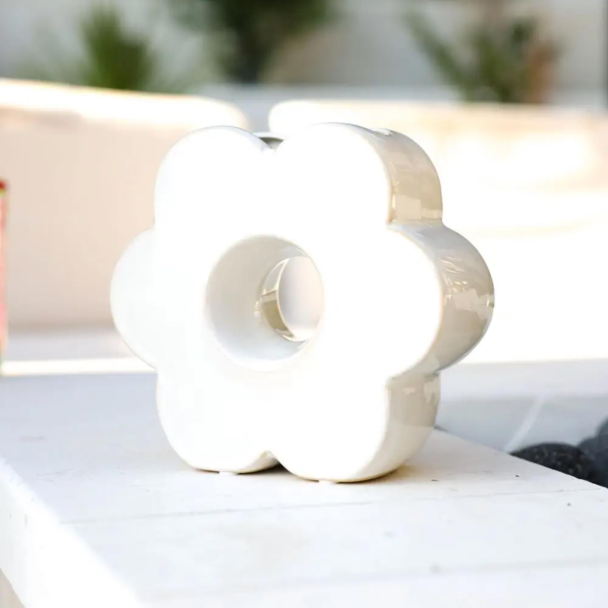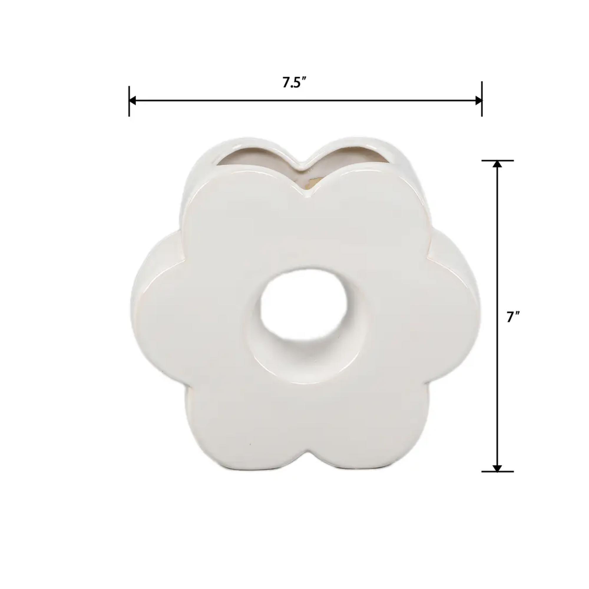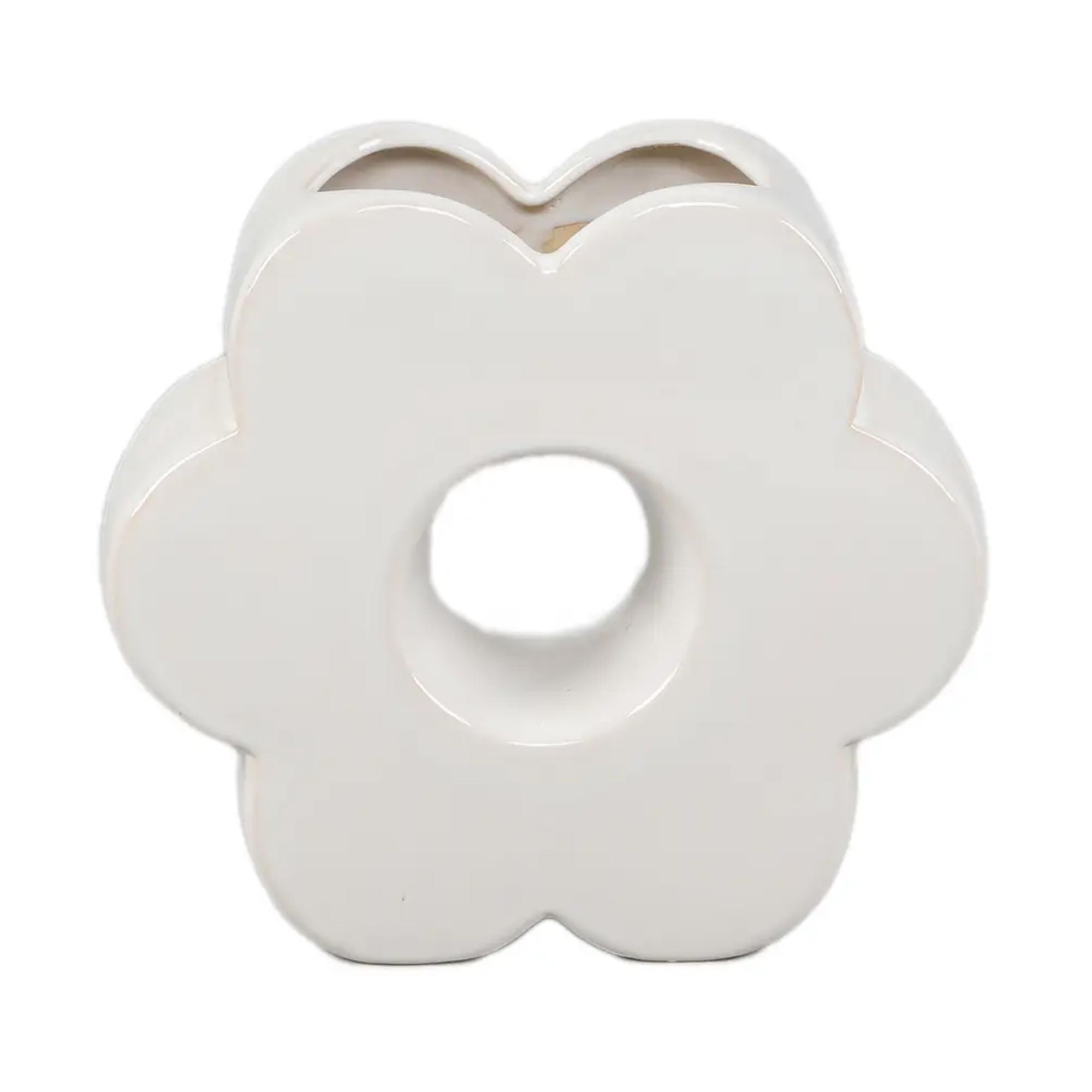 Bring a touch of modern floral charm to your space with this White Ceramic Flower Vase. Designed in a playful flower silhouette with smooth, rounded petals and a central cutout, this vase blends minimalism with whimsy for a stylish, eye-catching accent. The glossy white finish creates a clean, contemporary look that complements nearly any décor—from modern and Scandinavian to feminine, boho, and playful themes.
