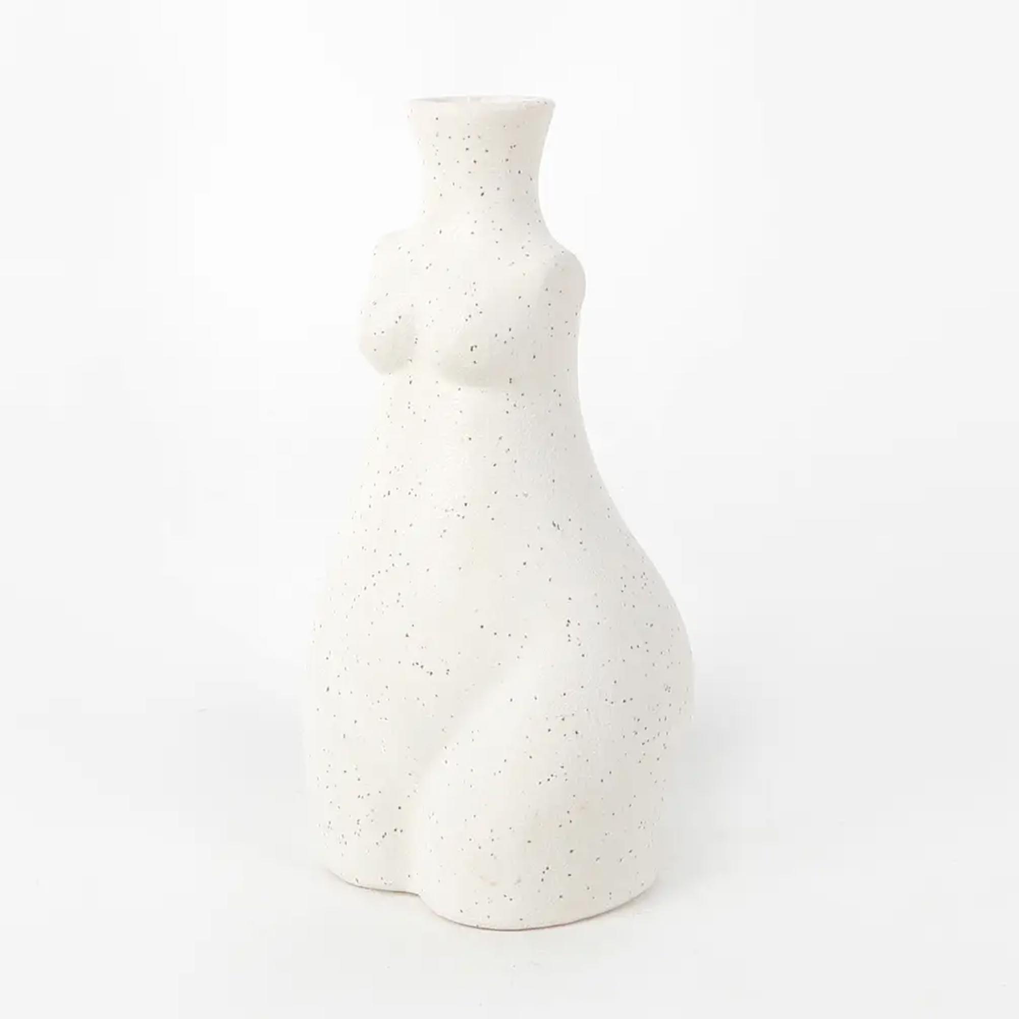 Bring modern artistry and organic charm to your décor collection with this Speckled Ceramic Female Torso Vase. Designed in a sculptural silhouette that celebrates the feminine form, this vase adds a touch of elegance and contemporary style to any shelf, mantel, or tabletop display.