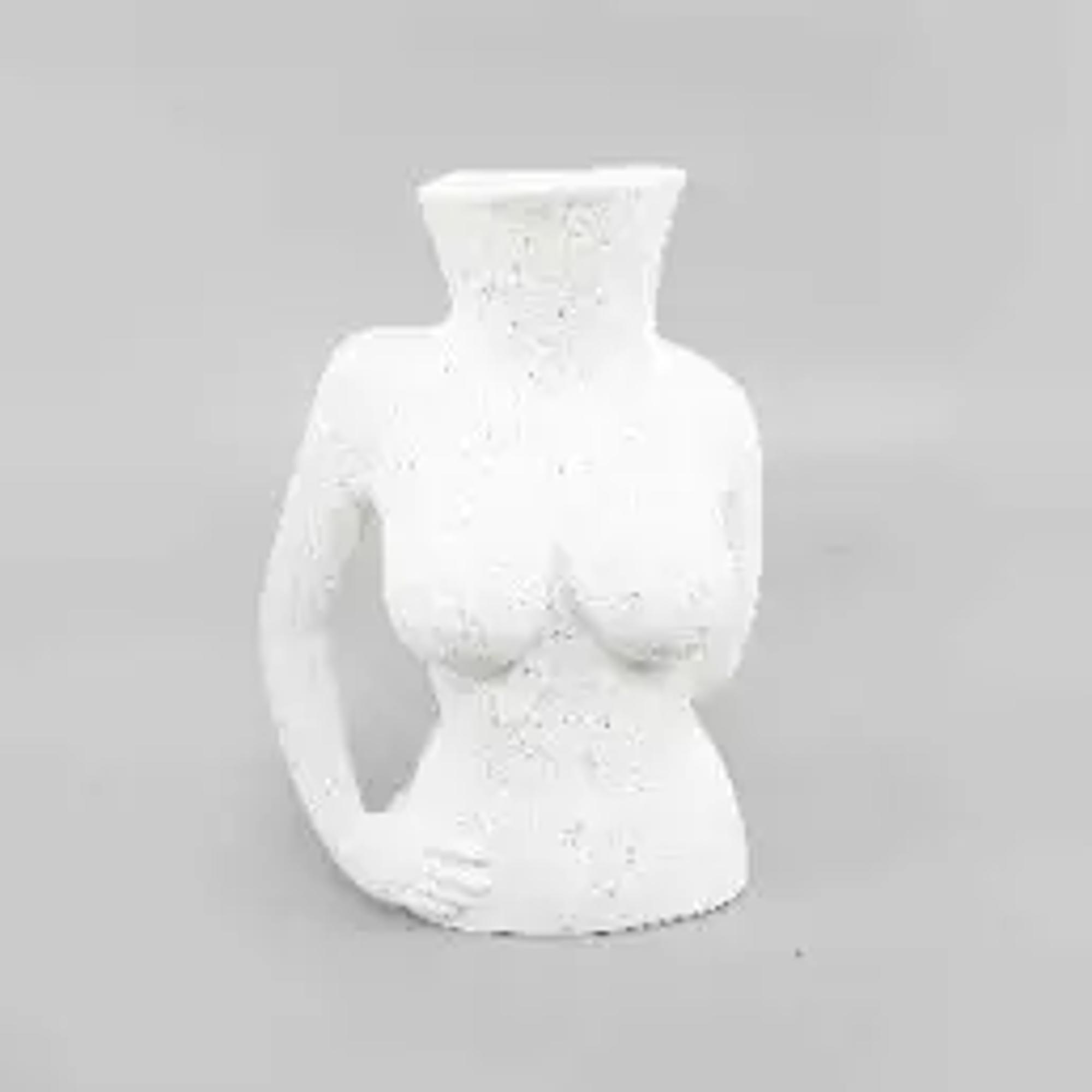 Celebrate modern artistry with this Textured White Female Torso Vase, a sculptural décor piece that adds sophistication and bold personality to any space. Crafted from ceramic with a speckled matte finish, this statement vase features a beautifully stylized silhouette that highlights natural curves, making it an elegant accent for shelves, coffee tables, vanities, and entryways.