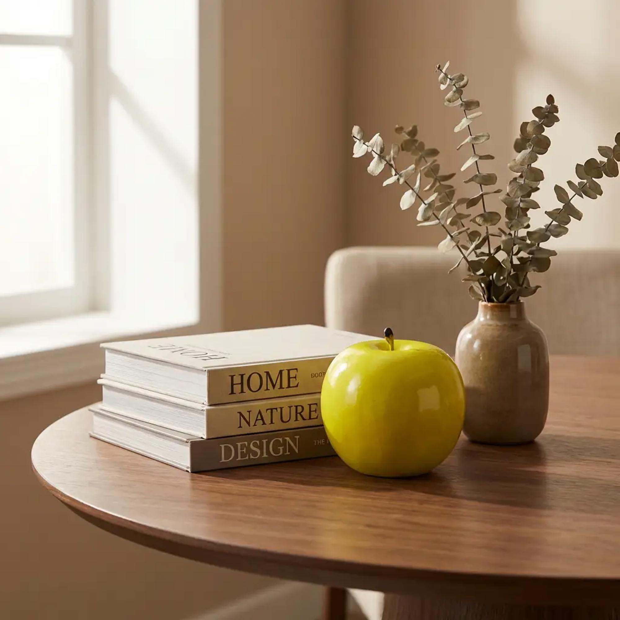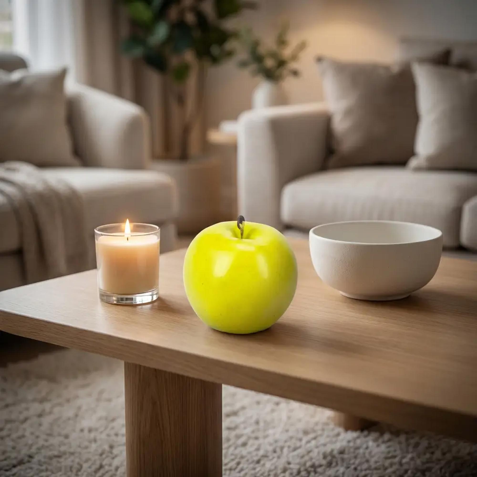 Bring a fresh, crisp pop of color to your kitchen décor, fruit bowls, centerpieces, and retail displays with this Artificial Apple. Designed with a smooth glossy finish and realistic stem detail, this faux apple adds a natural look without the worry of bruising or spoilage.