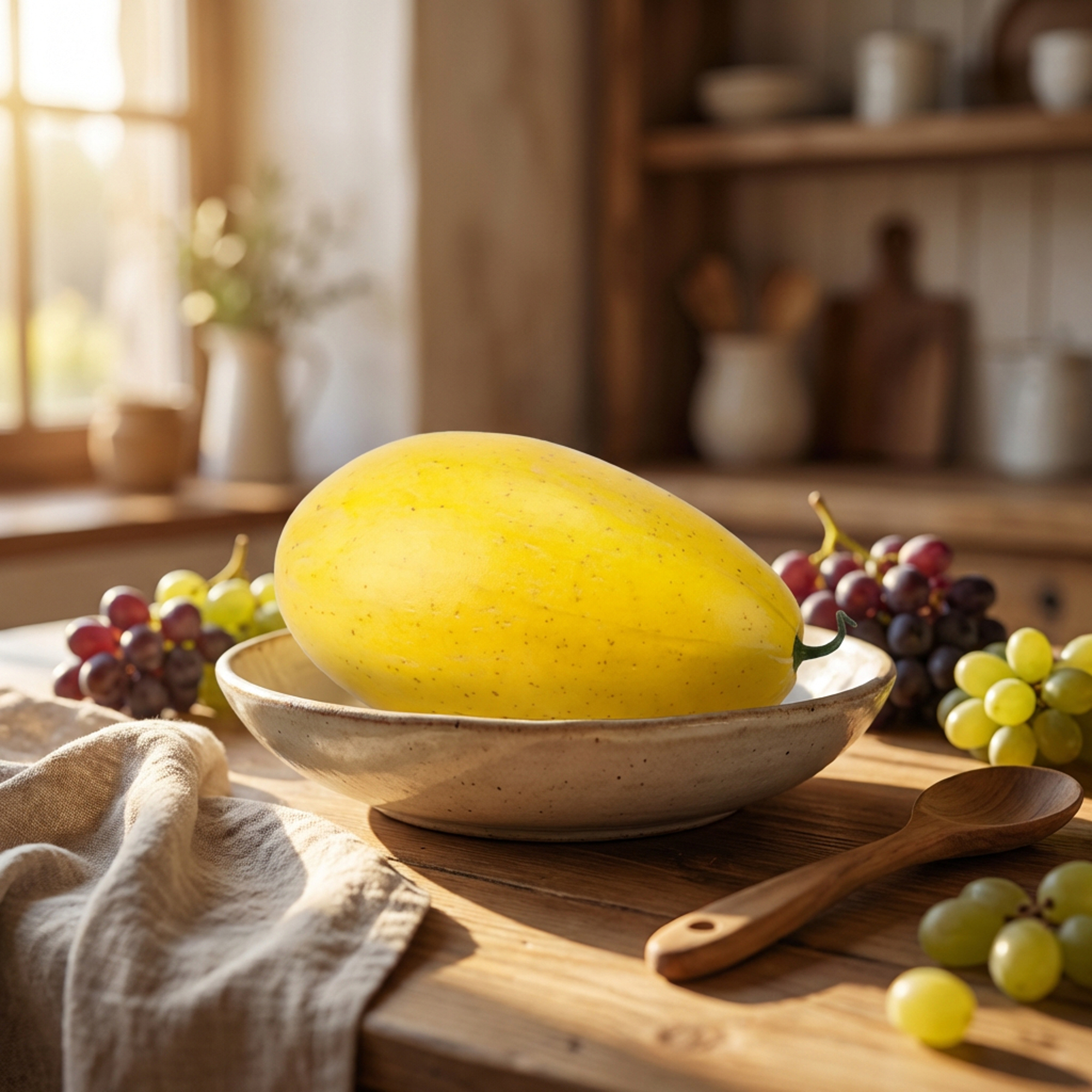 Brighten any kitchen, dining display, or market-style setup with this Artificial Yellow Melon. Designed with a smooth, realistic texture and vibrant golden-yellow color, this faux melon adds a fresh, summery touch to bowls, centerpieces, and retail merchandising.