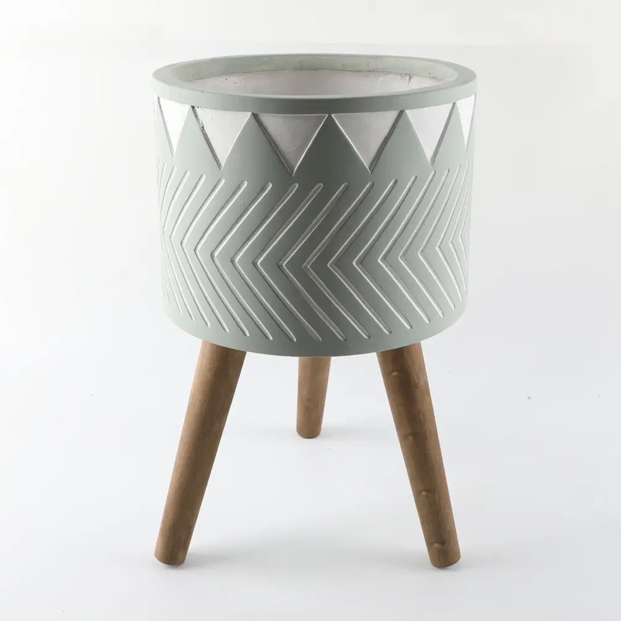 Elevate your plant styling with this 12” Ceramic Planter on Wood Legs, crafted to bring a touch of modern artistry to any space. Designed with a textured chevron pattern and clean geometric accents, this planter blends effortlessly into boho, Scandinavian, farmhouse, and contemporary décor styles—making it a versatile best-seller for boutiques, home décor shops, and garden-inspired storefronts.