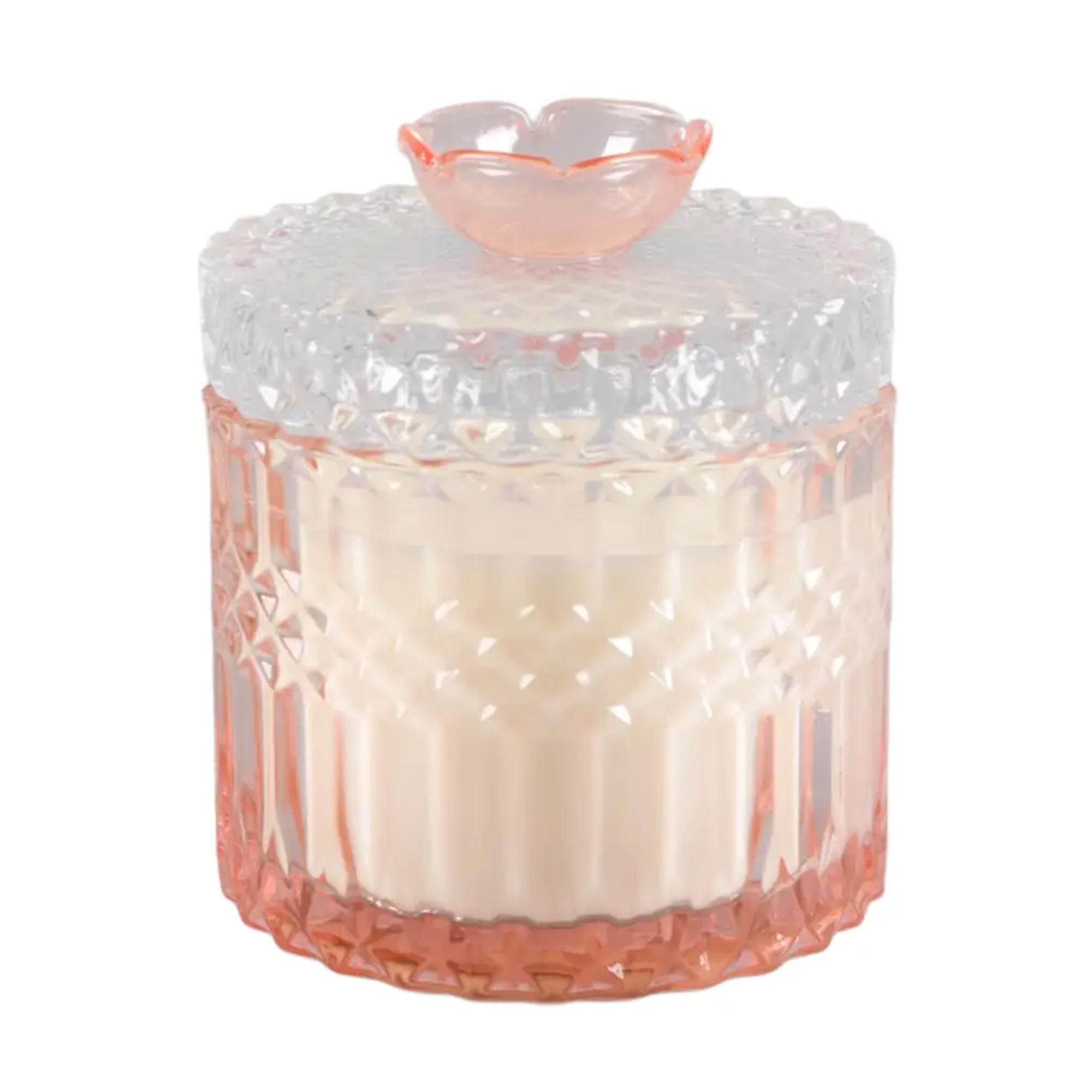 Pink Cut Glass Candle with Lid - Peony Garden