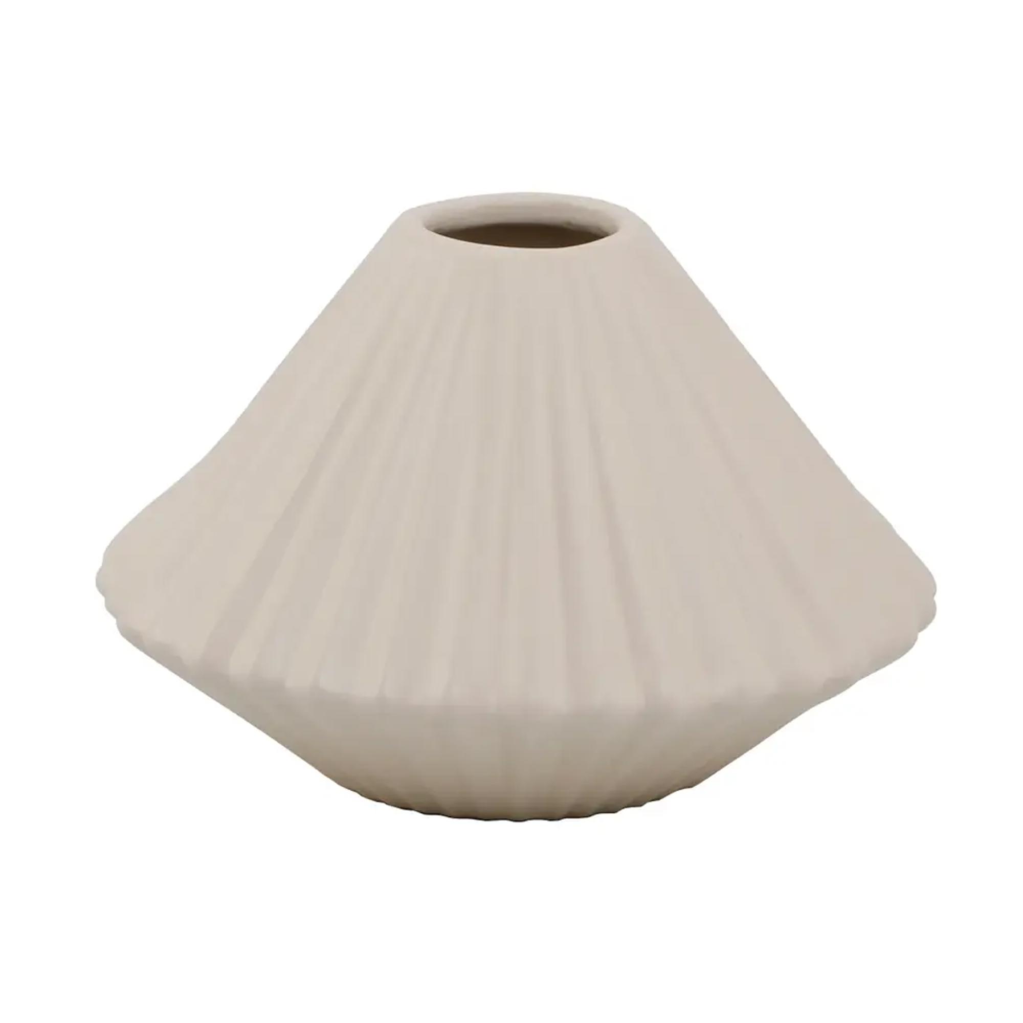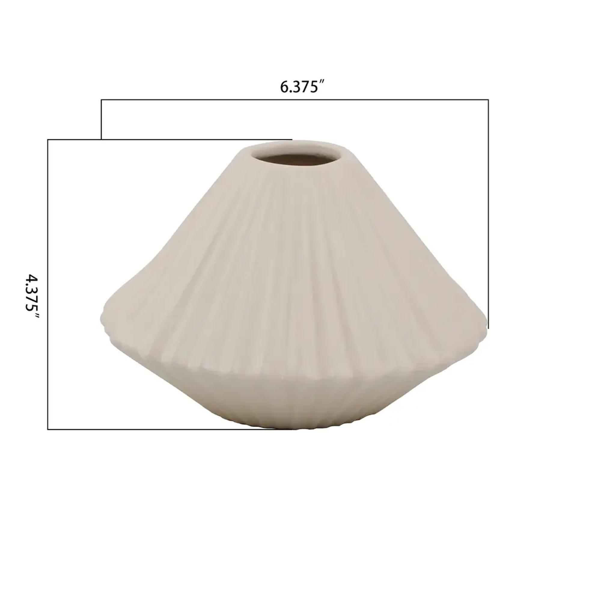 Bring soft, sculptural elegance to your décor with this shell-inspired ceramic vase. Designed with a unique fluted silhouette that echoes the gentle curves of coastal forms, this piece adds texture, dimension, and modern artistry to any space. The matte beige finish enhances its organic shape, making it a versatile accent that blends seamlessly with minimalist, coastal, boho, and contemporary interiors.