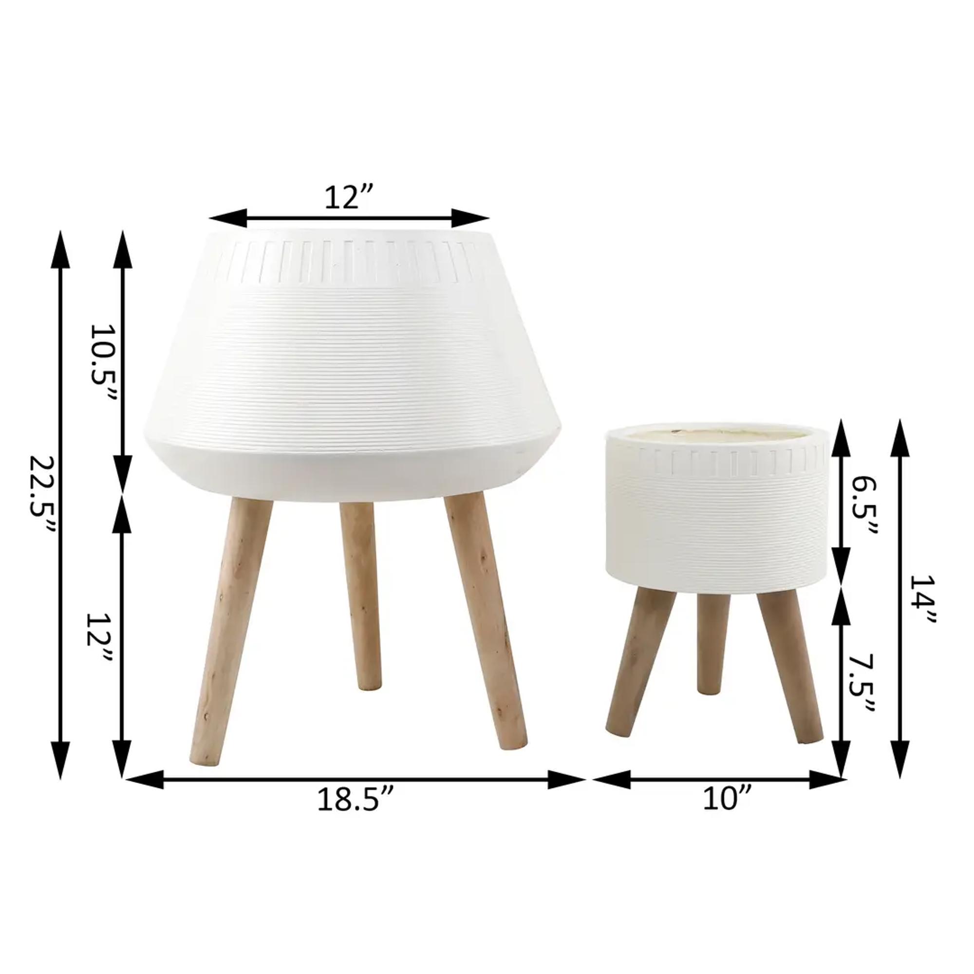 Decorate Your Space With Our Dumpling Fiberglsas Planter With Legs.Set Of 2 Made Of Superior Fiberglass Material, Which Is Stronger And Lighter Than Cement, This Planter Will Not Disappoint. Hand-Crafted By Artisans, Our Fiberglass Planter With Legs Will Help Upgrade Your Plant Game In Style. Made Of Fiberglass With A Tribal Pattern And Painted Cream And Brown, This Planter Will Add A Bit Of Chic Nature To Your Living Space. Buy A Few At A Time, So You Can Start Your Own Little Garden Indoors! (Hand-Crafted By Artisans, Material: Fiberglass, Wood. Large Size: 18.5"X18.5"X11.75", Inter: 9.75"X9.75"X9.75". Capacity: 952.38. Small Size: 9.75"9.75"X6.75", Inter: 8.5"X8.5"X6". Capacity: 450. Color: Cream, White). ** No Drainage Hole.