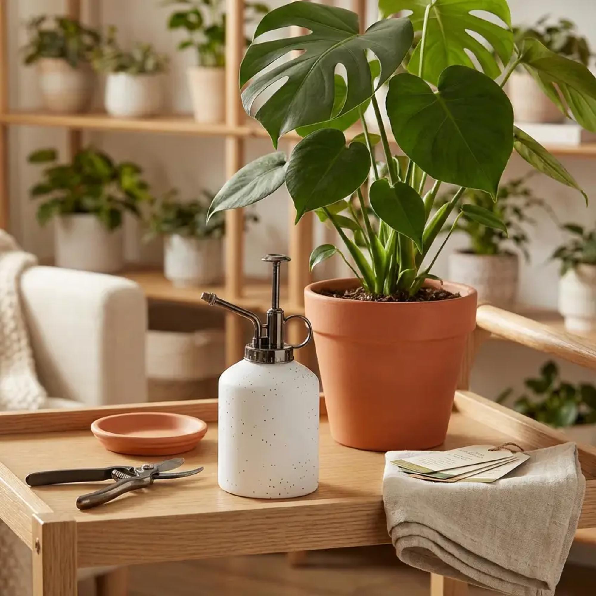 Elevate your plant-care routine with this White Speckled Ceramic Plant Mister—a chic blend of functionality and modern design. The smooth white ceramic base is accented with subtle gold speckles, creating a fresh, stylish look that pairs beautifully with contemporary, Scandinavian, and minimalist décor. Topped with a polished silver-tone metal pump, this mister delivers a fine, gentle spray ideal for hydrating delicate leaves and boosting humidity for indoor plants.
