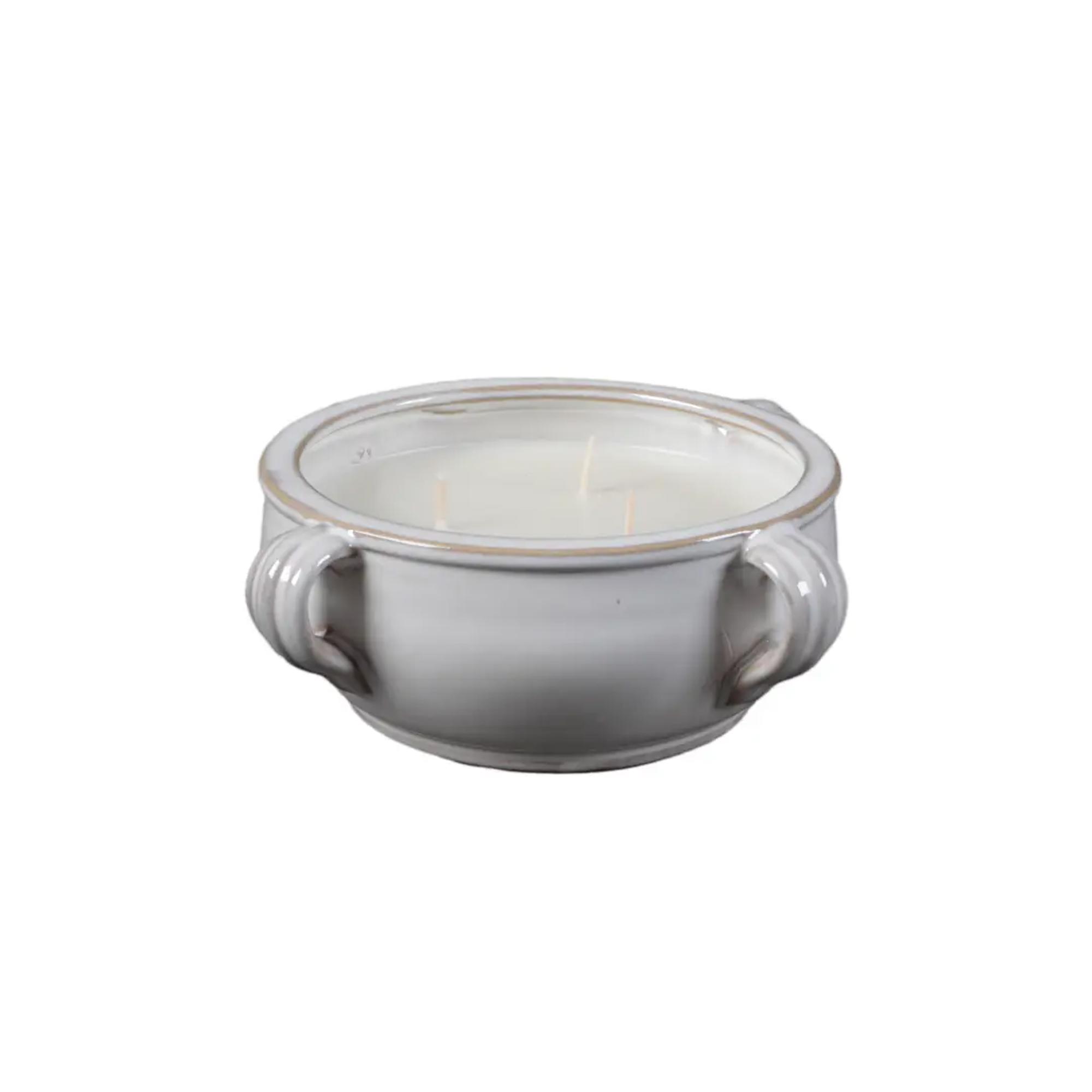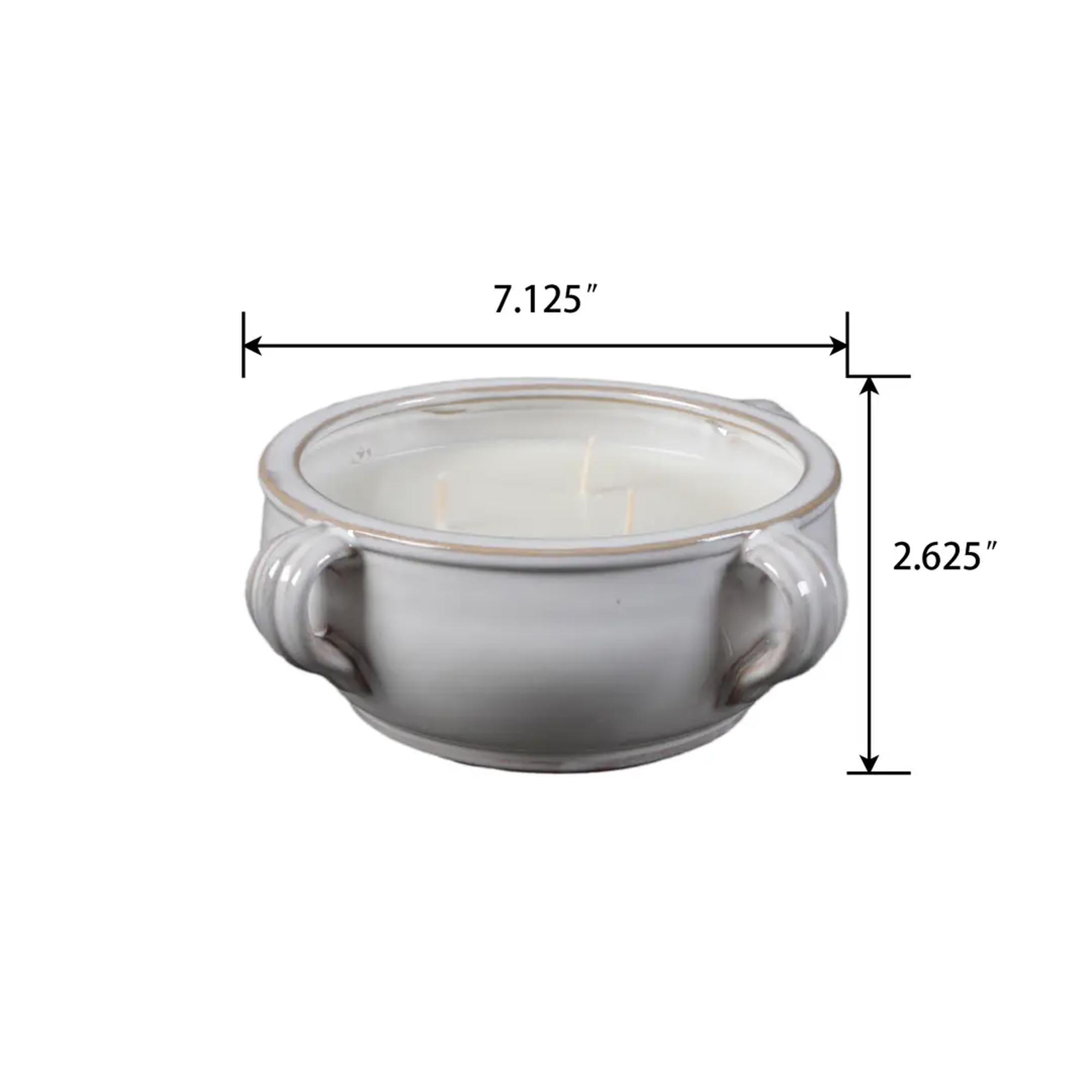 Elevate your home ambiance with this charming Stoneware Bowl Candle, designed to bring warmth and understated elegance to any room. Crafted from smooth glazed ceramic, this candle sits in a round bowl vessel accented with subtle side handles, giving it a timeless, artisan-inspired character. The soft, neutral tone blends seamlessly into modern, farmhouse, rustic, and minimalist décor styles.