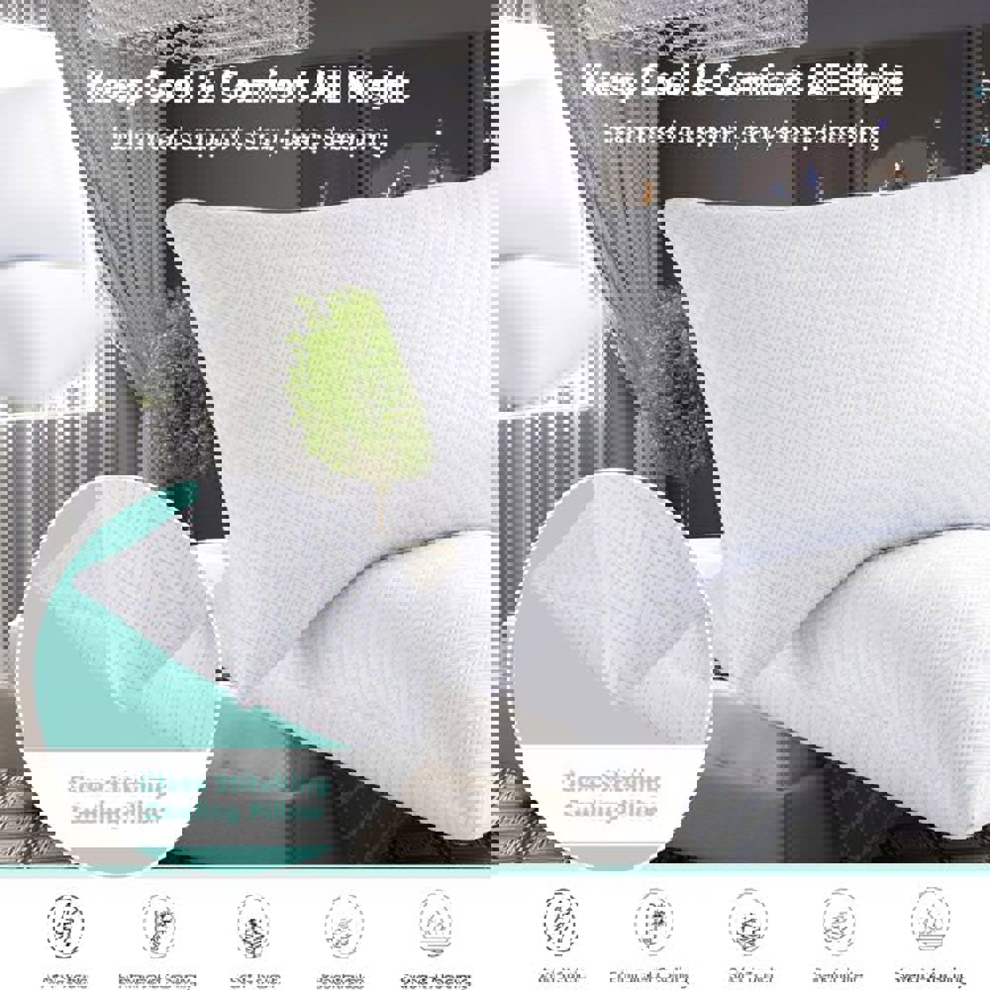 2-Pack | Soft & Plush Fiber Fill Adjustable Cooling Sleeping Pillow