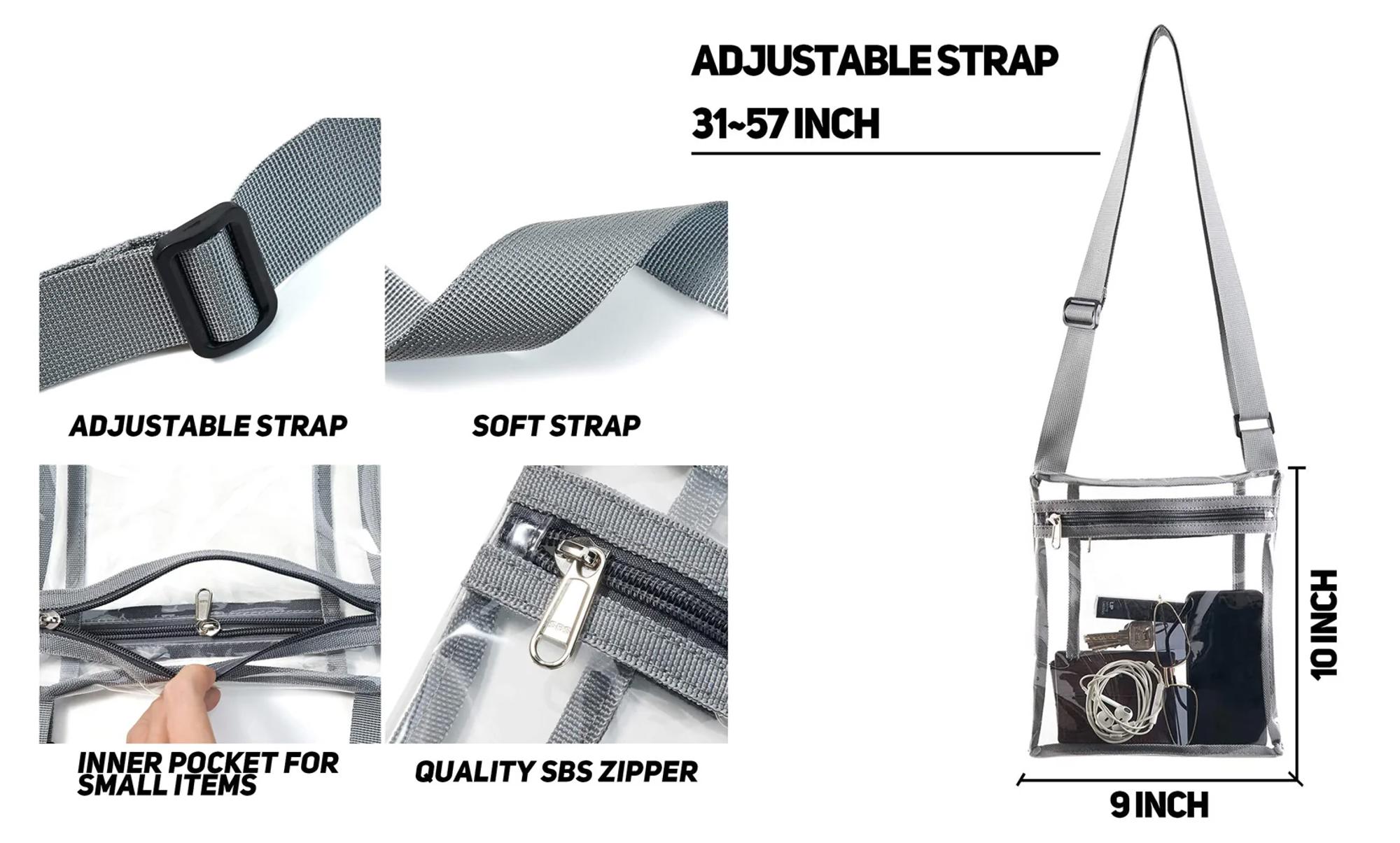 Clear Crossbody Bag Purse – Stadium Approved with Adjustable Strap for Men and Women